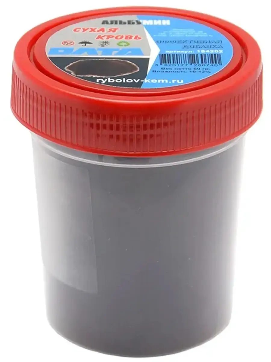 "Сухая кровь" применяется в рыбалке как добавка к прикормке. Можно использовать на зимней и на летней рыбалке. Можно сыпать в прикормку. Можно пропитывать поролонки. Сухая кровь применяется для приваживания хищных рыб: сом, судак, щука, окунь, ёрш, налим, голавль. Особенно эффективна при ловле в холодное время года!