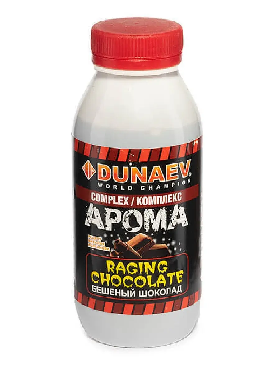 Dunaev Арома Комплекс Бешеный Шоколад – жидкая вкусоароматическая высокопитательная сладкая добавка для прикормок, отличающаяся уникальным ароматическим и аминокислотным комплексом, целенаправленно воздействующим на обонятельные и вкусовые рецепторы рыбы. Прежде всего такая добавка необходима для повышения питательных и вкусовых свойств прикормочных смесей. Арома-комплексы, добавленные в прикормку, привлекают трофейных особей к месту ловли. Внимание! Арома-комплекс Dunaev меняет химические и физические особенности смеси, увеличивая ее липкость и уменьшая мутность, путем изменяя рН. Дозировка: Одна бутылка арома-комплекса Dunaev рассчитана на добавление в 3-5 кг сухой смеси (при ловле на течении допускается добавление вещества в большем количестве). После чего содержимое тщательно перемешивается и добавляется требуемый объем воды, чтобы довести смесь до необходимой консистенции. Ароматические комплексы Dunaev являются всесезонными.