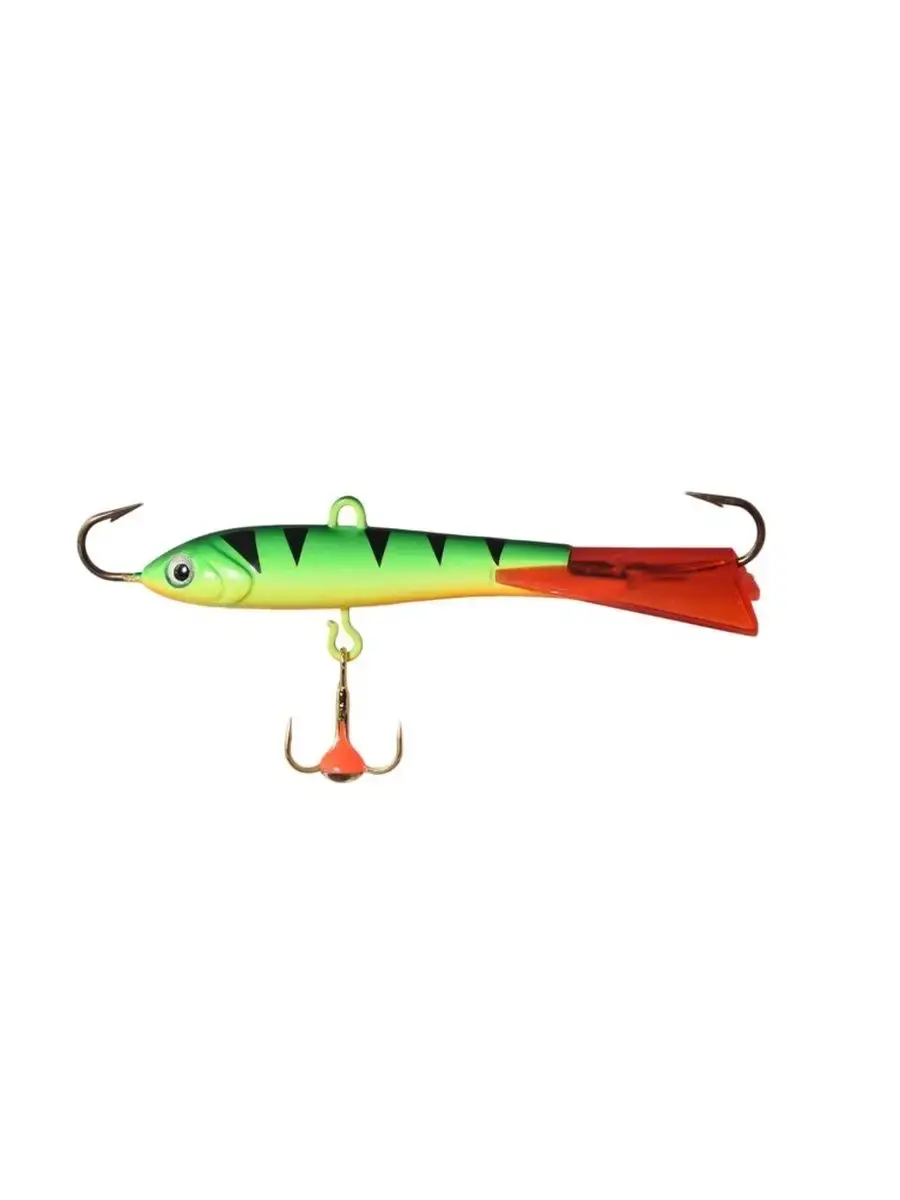 Классический балансир для подледной ловли оснащен высокопрочными тройниками японской компании Saikyo. Голографические "3D" глаза полностью имитируют натуральный рыбий глаз. Хвост изготовлен из морозостойкого и прочного пластика. Балансир имеет ярко выраженную игру, при анимации создает акустические колебания, которые привлекают рыбу. Популярная приманка для ловли судака, крупного окуня и щуки.