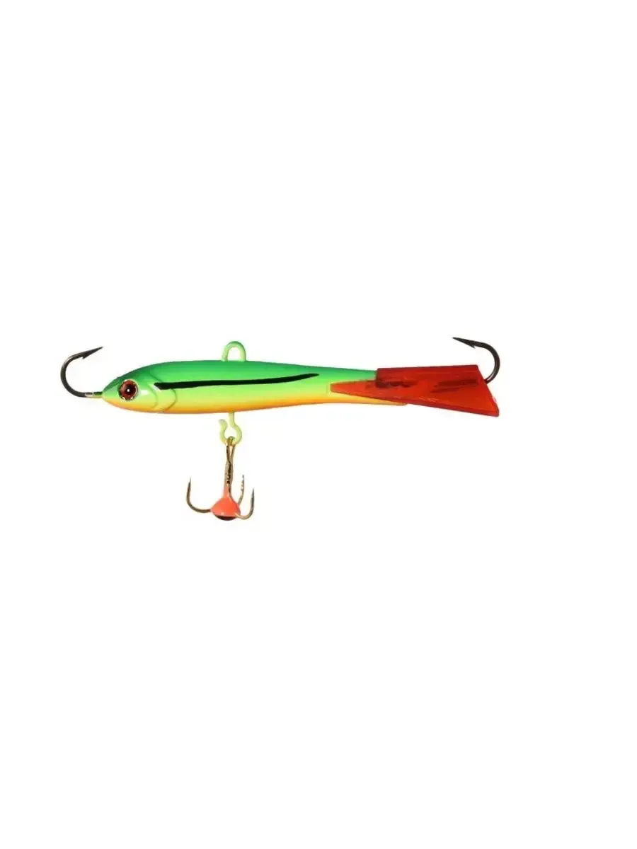 Классический балансир для подледной ловли оснащен высокопрочными тройниками японской компании Saikyo. Голографические "3D" глаза полностью имитируют натуральный рыбий глаз. Хвост изготовлен из морозостойкого и прочного пластика. Балансир имеет ярко выраженную игру, при анимации создает акустические колебания, которые привлекают рыбу. Популярная приманка для ловли судака, крупного окуня и щуки.