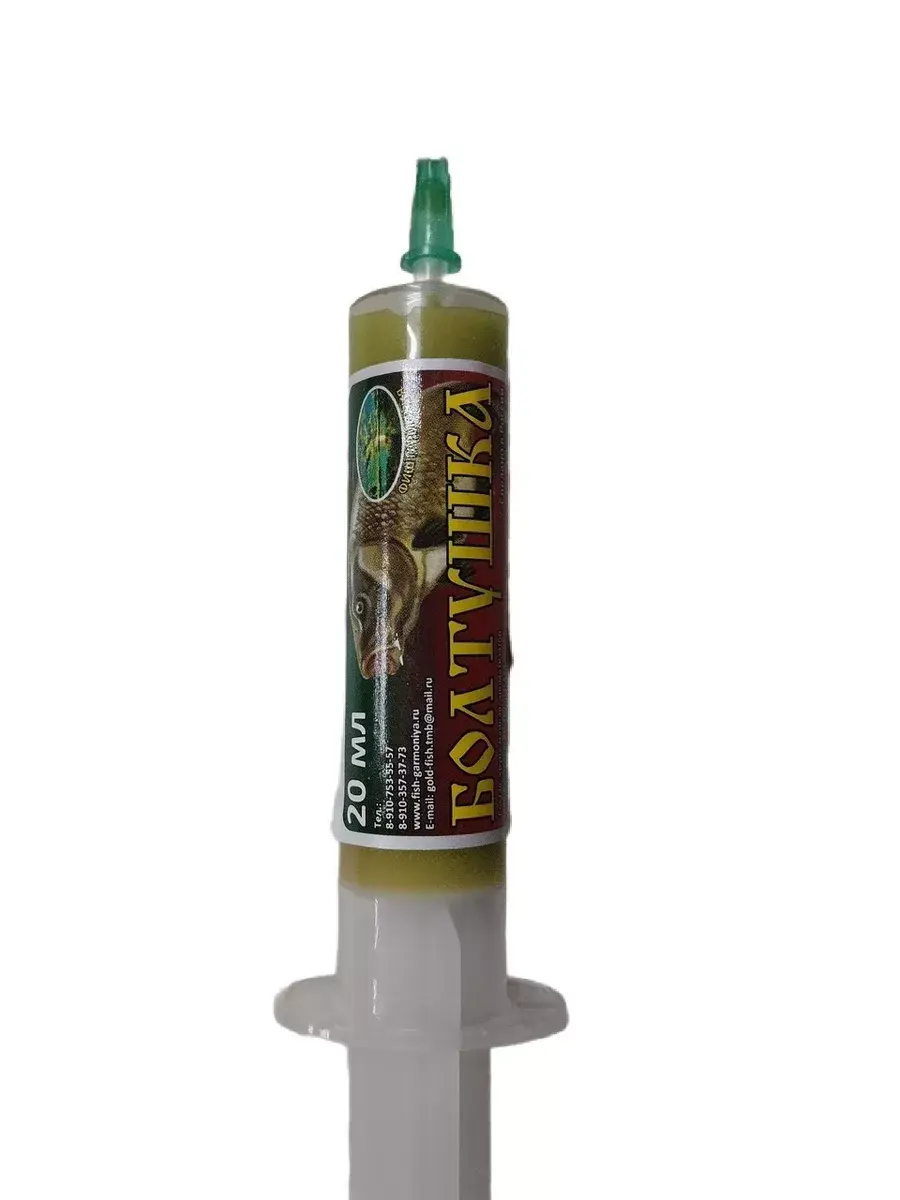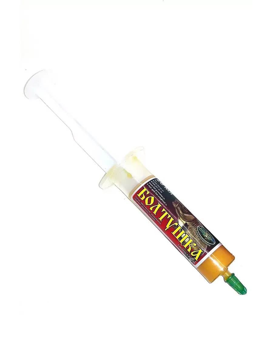 БОЛТУШКА в шприце (20мл) готовая к употреблению. Лучшая насадка для карася и других карповых видов. Делается состав из особого сорта манки с добавлением некоторых связующих, ароматизирующих и увеличивающих срок хранения компонентов. Отлично работает на рыбалке. Способ применения прост. Берем крючок, шприц с болтушкой. Медленно выдавливаем болтушку из шприца и накручиваем на крючок, так чтобы крочёк весь покрылся “канатиком” из болтушки. Немного слегка примять и с минуту-две нужно подождать, чтобы болтушка чуть подсохла.