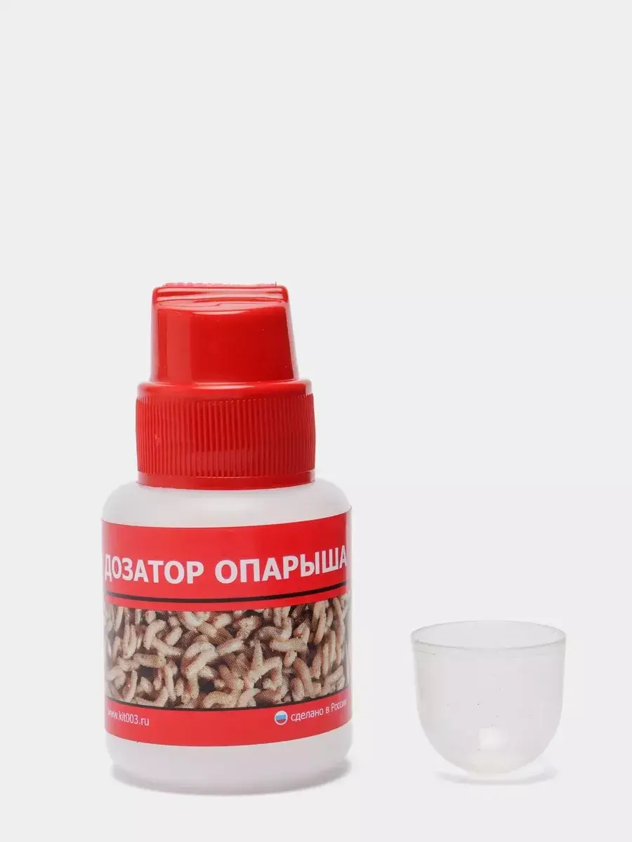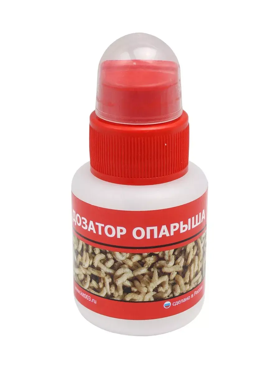 Флакон со специальной завинчивающейся крышкой-дозатором и колпачком для надежной транспортировки и хранения живого опарыша и мотыля. Стандартные коробочки для опарыша не удобны для применения, при ловле в лодке, в ветреную погоду переворачиваются, опарыш рассыпается, в ходовой ловле тоже крайне неудобно использовать ненадежные конструкции из тонкого пластика. В таких ситуациях выручит дозатор для опарыша. Как он работает? Опарыш пересыпается в емкость дозатора и закрывается крышкой, в которой присутствует специальная прорезь. Крышка выполнена из мягкого пластика, в момент, когда необходимо достать опарыш, нужно наклонить емкость дозатора и просто нажать на крышечку и взять необходимое количество опарыша. В комплекте к дозатору опарыша идет крышка, что делает его крайне удобным при переноске, в зимней рыбалке можно положить в карман и держать опарыш в тепле, чтобы он не мерз и оставался подвижным. Летом в ходовой или в лодочной ловле также удобно держать дозатор в кармане или поясе для удобства применения.