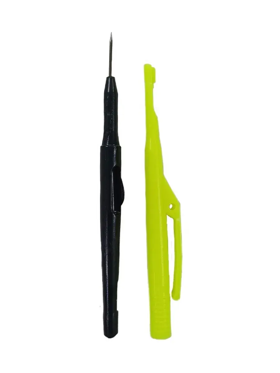 Экстрактор рыболовный - это важный аксессуар в арсенале рыбака с любым опытом и стажем, который позволяет без труда извлечь крючок из пасти рыбы. Здесь представлен пластиковый экстрактор с иглой Namazu. Его общая длина составляет 16,8 см, масса при этом всего 5 гр. Габариты нержавеющей иглы 1,5 см. Сам экстрактор позволяет без труда извлечь крючок из пасти рыбы, когда она его глубоко заглотила. Это поможет уберечь снасти и меньше травмировать саму добычу. Игла удобна, когда на рыбалке в полевых условиях нужно распутать узелок на леске. Острое жало закрывается колпачком. На нем предусмотрено крепление, чтобы зафиксировать экстрактор, как ручку, на кармане.