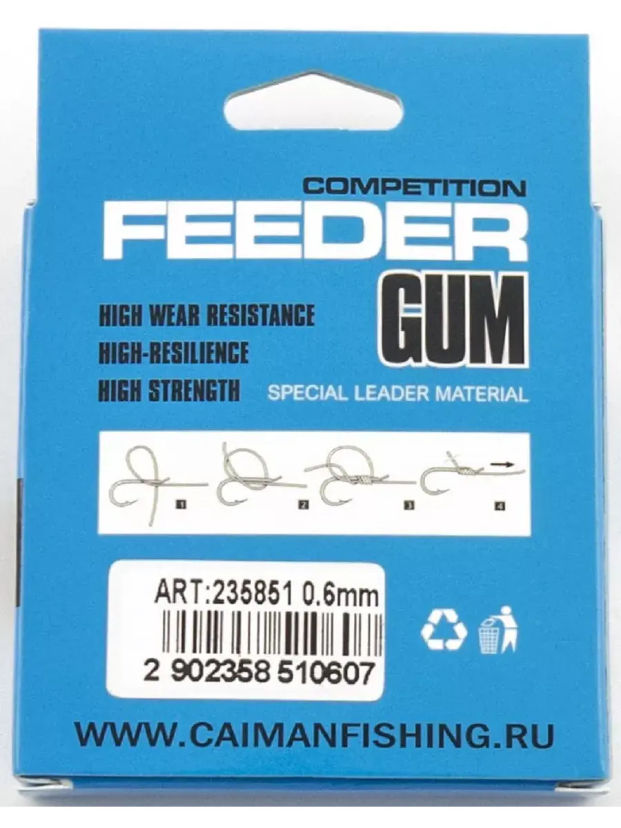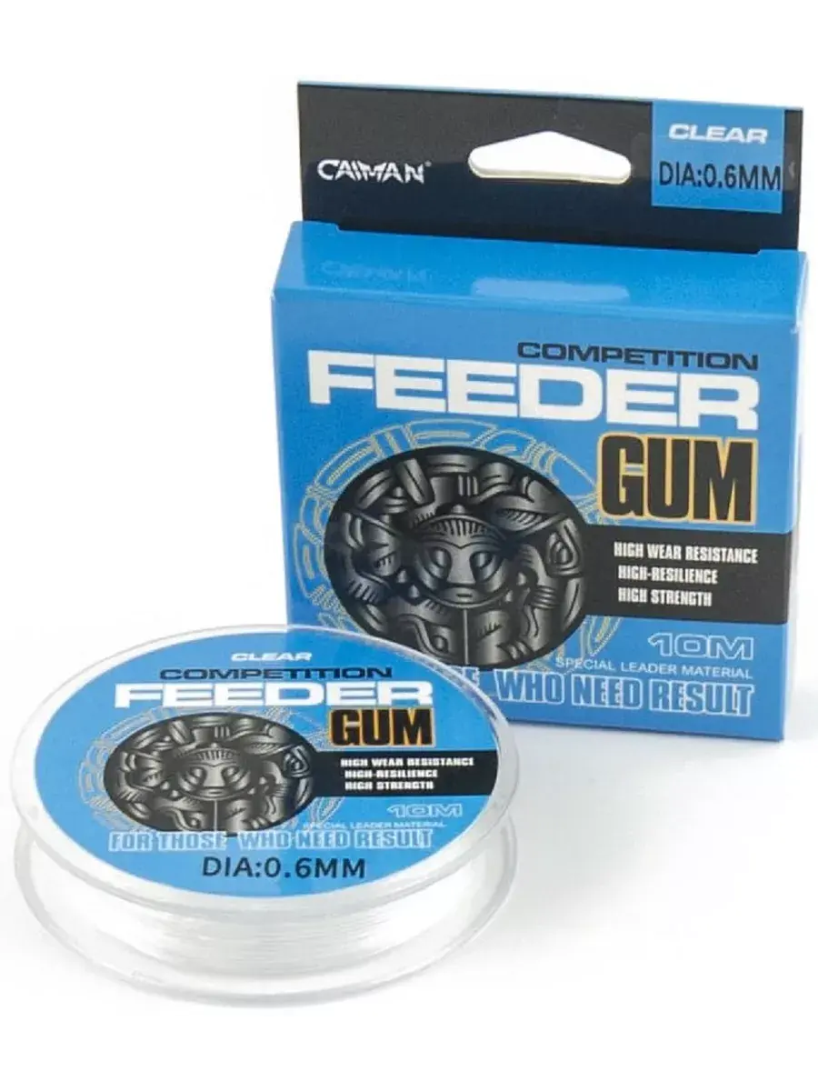 Для команды Кайман в оснастке нет мелочей. Команда бренда продумывает детали, чтобы рыбаку было проще и быстрее собрать надежный монтаж под свои задачи. Серия Feeder Gum Competition подойдет для любительской и спортивной ловли. Отличается высокой растяжимостью, эластичностью, увеличенным прочностным запасом. Задача такого шок-лидера – компенсировать избыточную нагрузку при резком рывке сильной рыбы. Таким образом, можно быть уверенным, что остальная оснастка останется целой. При вываживании резинка помогает измотать сопротивляющуюся добычу. Фидергам Caiman можно использовать с плетенкой, чтобы увеличить чувствительность монтажа. Серия получила прозрачное исполнение, потому незаметна в водной толще и не отпугнет подозрительную рыбу.