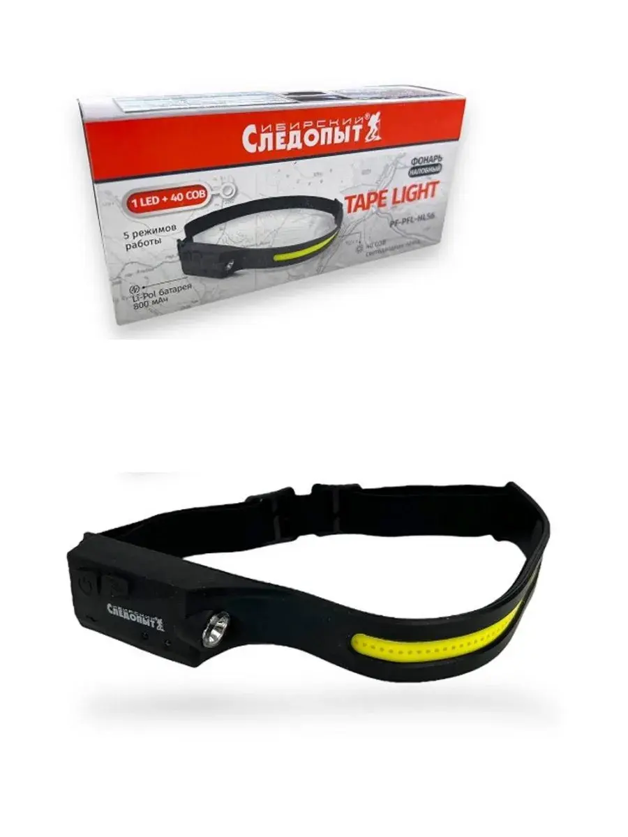 Фонарь «Следопыт» TAPE LIGHT – современный налобный ленточный фонарь на мягком резиновом ремне. Оснащен одним ярким LED-светодиодом точечного света и 40 СОВ-светодиодами лентой. Предназначен для мощного заполняющего панорамного освещения на ближнем расстоянии с возможностью подсветки точечно или вдаль боковым светодиодом. Имеется режим индукционного включения и выключения светодиодов бесконтактным способом, например, по взмаху руки. Фонарь имеет 5 режимов работы: СОВ-светодиоды – яркий свет, экономное освещение, боковой LED-светодиод – яркий свет, экономное освещение, стробоскоп. Линейка светодиодов расположена на мягком обрезиненном основании, что обеспечивает максимальный комфорт для пользователя. Регулировка фонаря на голове осуществляется удобно и быстро с помощью пластиковых пряжек. Время свечения светодиода на максимальной яркости от нового аккумулятора составляет не менее 2 часов, время полного заряда аккумуляторов – около 3-5 часов. На обрезиненном батарейном блоке с LED-светодиодом имеется световой индикатор заряда батареи.