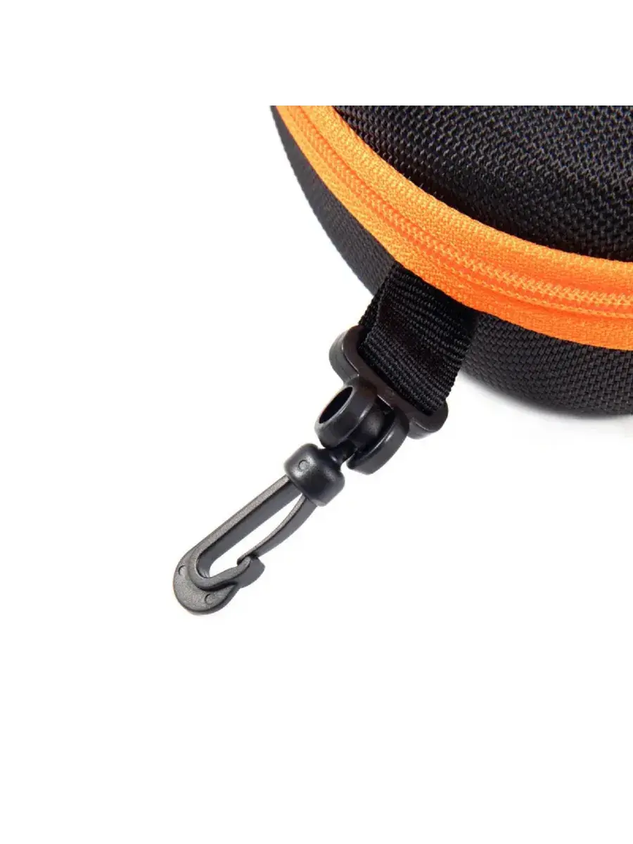 Этот аксессуар оснащен удобным карабином, что позволяет прикрепить футляр к поясу, рюкзаку или другим элементам одежды.