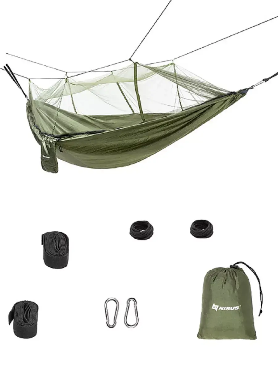 Гамак NISUS с москитной сеткой предназначен для использования на отдыхе, кемпинге, даче. За счет портативной москитной сетки гамак NISUS надежно защитит вас от надоедливых мошки и комаров. Гамак имеет пристроченный чехол с утяжкой для хранения, идет без планок для крепления на стропы. В разложенном виде чехол можно использовать как карман для хранения.