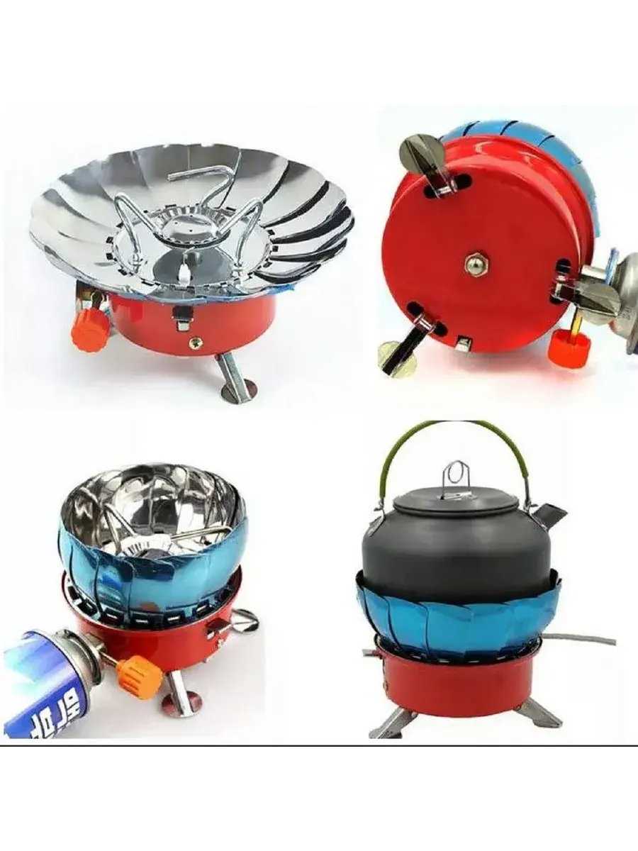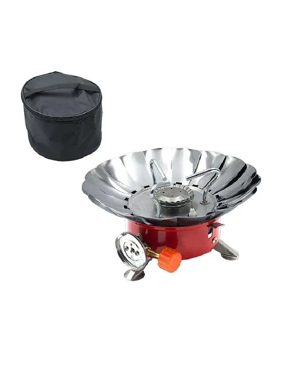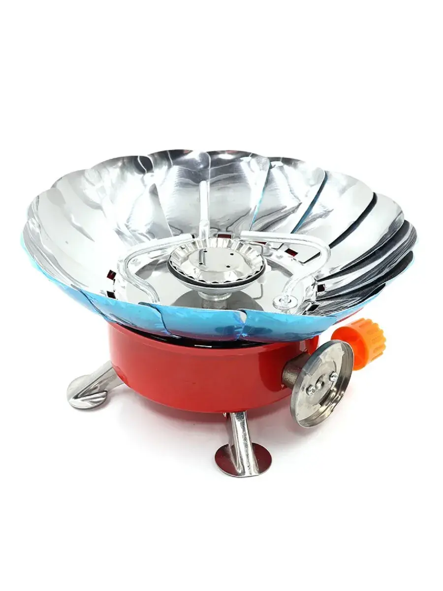 Портативная газовая плита с регулируемой ветрозащитой используется для приготовления еды и кипячения воды в походах, на рыбалке, охоте и при активном отдыхе на природе.