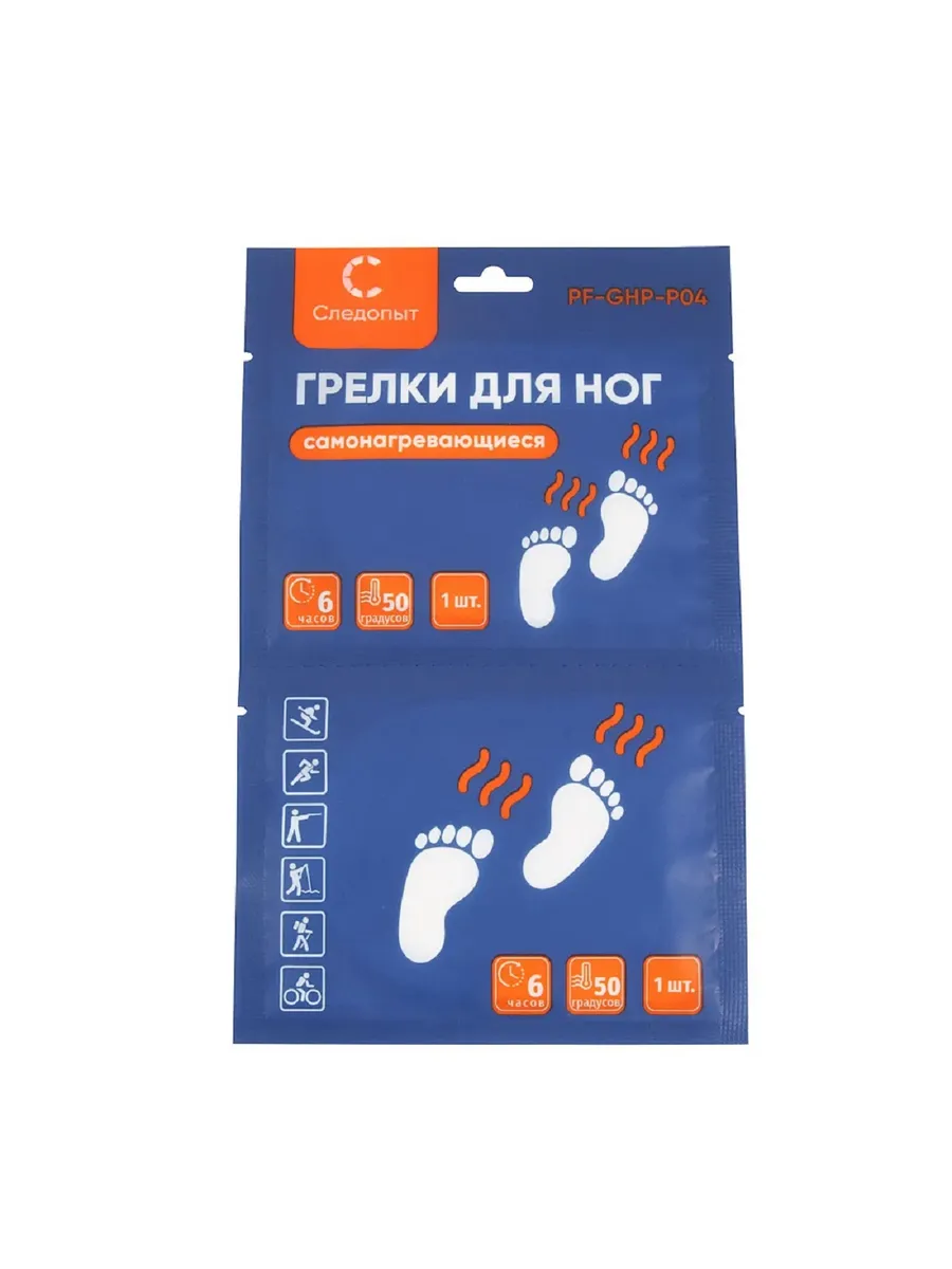 Самонагревающиеся грелки для ступней ног "Следопыт" позволяют не замерзнуть во время долгих прогулок, спортивных тренировок на открытом воздухе, а также рыбалке или охоте. Грелки приклеиваются липкой стороной к стельке или носку изнутри.