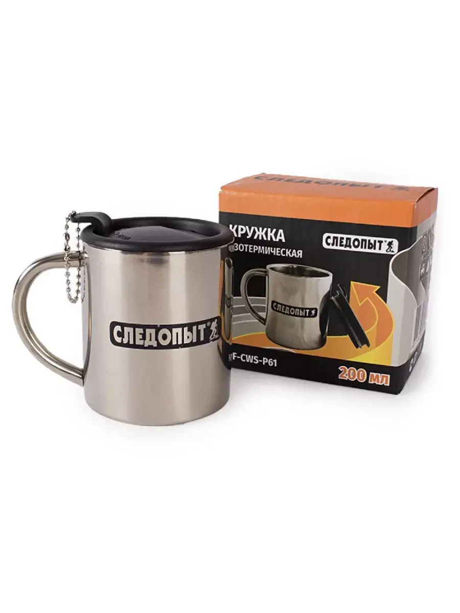 Походная кружка СЛЕДОПЫТ с двойной стенкой, изготовлена из нержавеющей стали методом штамповки и последующего сваривания двух независимых сосудов разных диаметров. Поставляется в комплекте с удобной крышкой, которая имеет уплотнительное кольцо из высококачественного силикона.