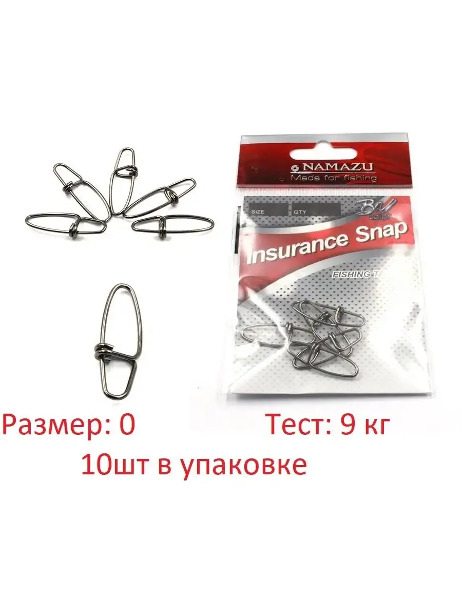 Слово insurance переводится с английского как "страховка". Таким образом эксперты Namazu подчеркивают надежность карабинов Insurance Snap. Подобные застежки позволяют оперативно менять кормушки и приманки и избежать вязания лишних узлов, которые снижают прочность лески. Namazu Insurance Snap включает модификации разных размеров и, соответственно, нагрузки. Продаются элементы оснастки в упаковках по 10 или 5 штук.