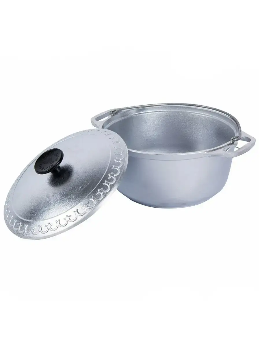 "АЗИАТКИ" - фасонный ряд конических КАСТРЮЛЬ с высокими крышками (с орнаментом), УТОЛЩЕННЫМИ стенками и дном. Стальная дужка удобна для подвешивания, крепления выдерживают большие нагрузки. Характеристики: - Кастрюля с крышкой Азиатка 2л - Размер: 268 х 209 мм - Толщина крышки: 3 мм - Толщина стенок: 2,8 мм - Толщина дна: 3 мм - Высота стенок: 94 мм - Объем: 2 л - Вес: 0,912 кг - Материал ручки: алюминиевая - Материал корпуса: литой алюминиевый сплав.Казан походный с крышкой выполнен из качественного прочного материала. Он отлично подойдет для приготовления различных блюд на даче, в загородном доме или на природе. Стальная дужка казана удобна для подвешивани и крепления. Она выдерживают большие нагрузки. Казан удобно брать с собой, не занимает много места. Объем 2 литра.