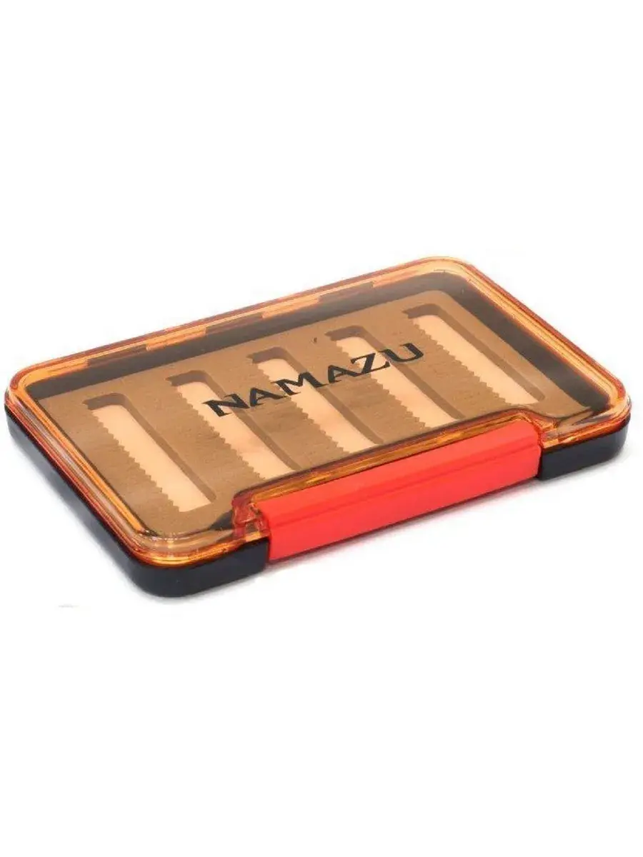 Коробка для мормышек и мелких аксессуаров Namazu Slim Box, тип A, 137х95х16 мм - односторонняя водонепроницаемая коробка из прочного пластика для хранения мормышек, мушек, блесен и т.д. Имеет запоминающийся дизайн и яркий цвет, который не позволит потерять коробку. Для предотвращения самопроизвольного открытия коробки снабжены надежными пластиковыми замками.