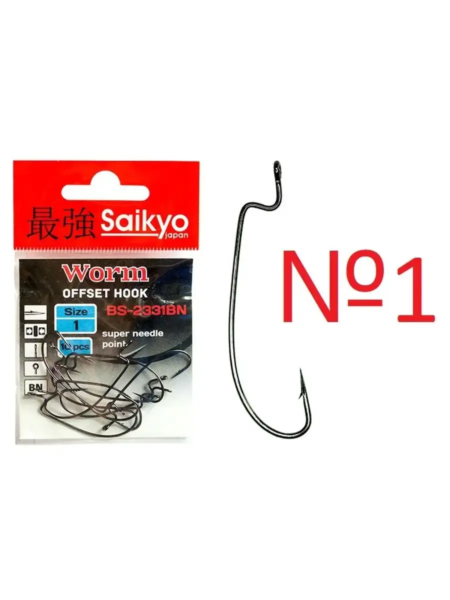 Офсетные крючки Saikyo BS-2331BN Worm предназначены для ловли на силиконовые приманки. Самая подходящая форма приманок для офсетников BS-2331BN - это черви, слаги и пиявки. Крючки изготовлены из тонкой и прочной проволоки. Форма загиба обеспечивает отличную засекаемость. Серия имеет покрытие Black Nickel.