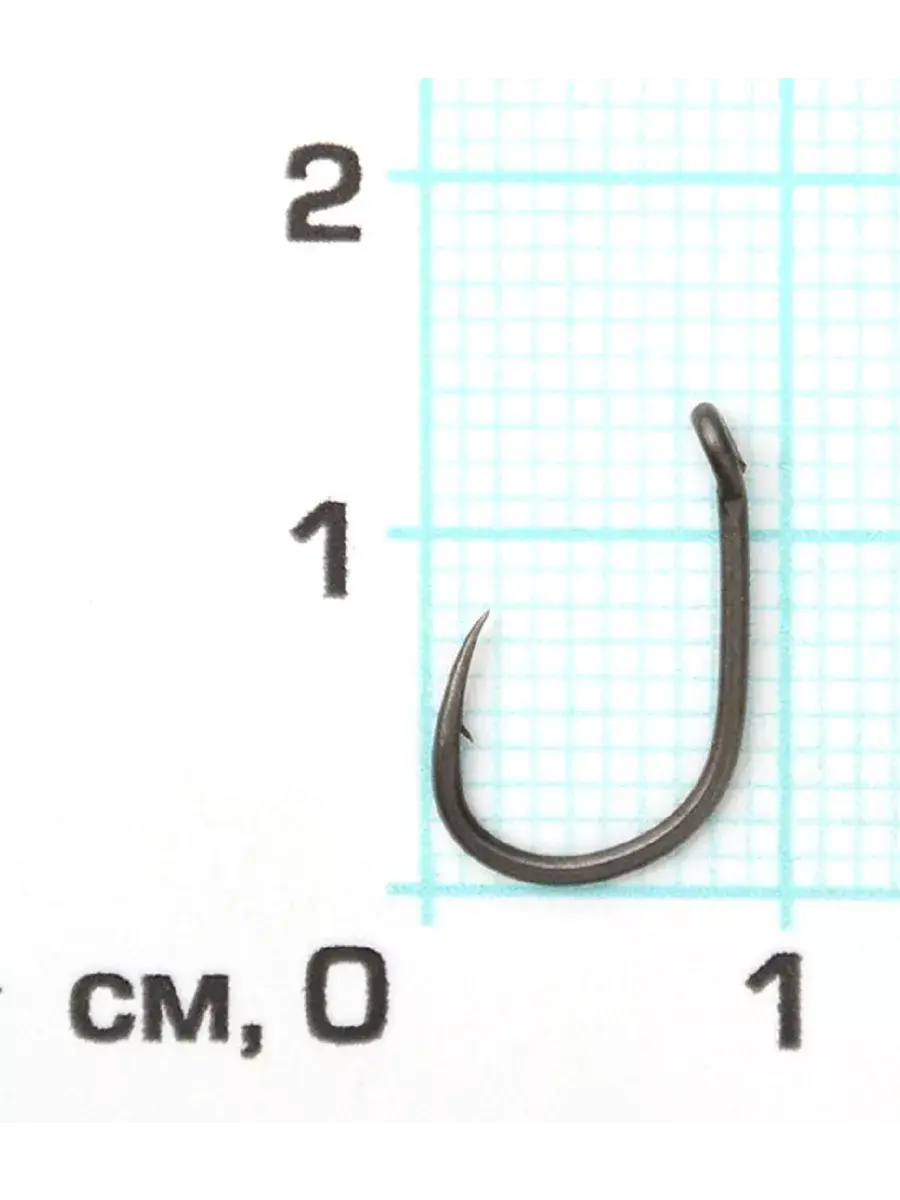Крючки с антибликовым покрытием округлой формы с прямым укороченным цевьем и широким поддевом. Колечко и жало немного отогнуты внутрь.
