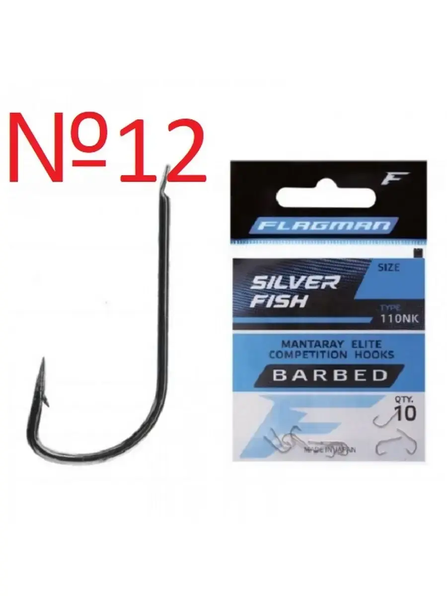 Линейка Silver Fish производится для бренда Flagman на японском заводе, что говорит о высоком контроле качества. Прочная проволока устойчива к коррозии, потому крючки долговечные и надежные. Могут использоваться для любительской и спортивной поплавочной ловли и донной. У них длинное прямое цевье, которое оканчивается лопаткой для крепления к оснастке. Жало игольчатое, обладает острейшей заточкой, что сохраняется долгое время. Есть бородка. С точки зрения возможной добычи данная серия универсальна и подойдет для охоты на разных мирных рыб.