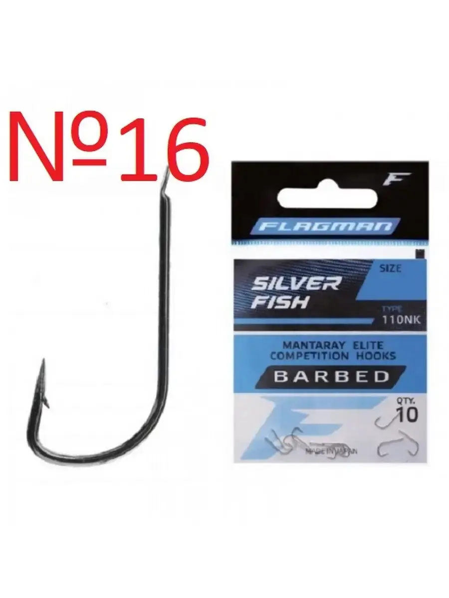 Линейка Silver Fish производится для бренда Flagman на японском заводе, что говорит о высоком контроле качества. Прочная проволока устойчива к коррозии, потому крючки долговечные и надежные. Могут использоваться для любительской и спортивной поплавочной ловли и донной. У них длинное прямое цевье, которое оканчивается лопаткой для крепления к оснастке. Жало игольчатое, обладает острейшей заточкой, что сохраняется долгое время. Есть бородка. С точки зрения возможной добычи данная серия универсальна и подойдет для охоты на разных мирных рыб.
