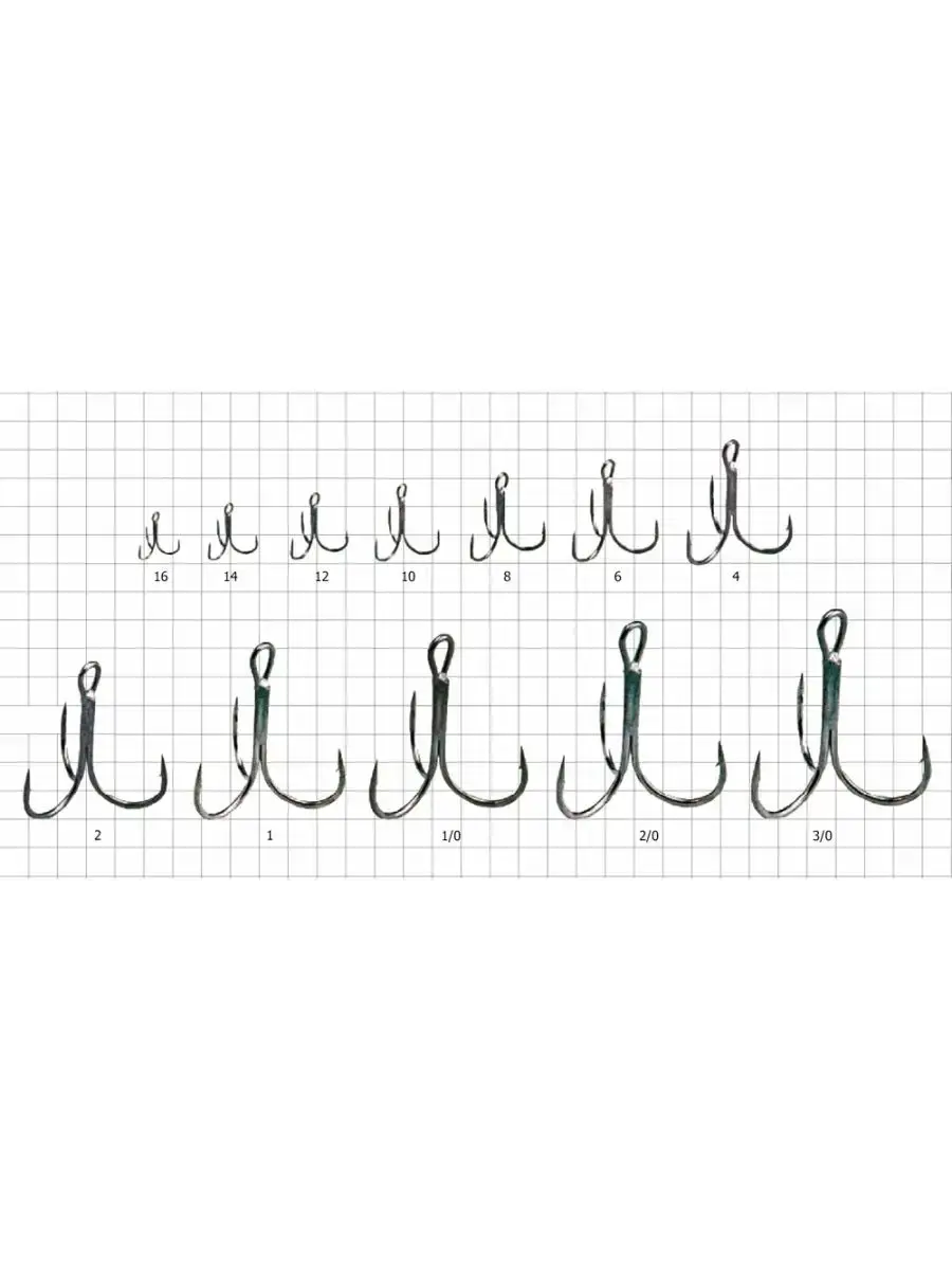 Тройник из сверхпрочной углеродистой стали с классическим круглым поддевом. Острейшее жало типа Needlepoint (остриё иглы). Химическая заточка позволяет добиваться не только исключительной остроты, но и делает остриё прочным и устойчивым к повреждениям. Аккуратная микро «бородка» не препятствует проникающей способности жала, но надёжно удерживает рыбу на крючке. Поверхность крючка покрыта чёрным никелем, это защита от коррозии. Размер цевья оптимальный для использования в различных методах ловли. Увеличенный размер головки(ушка), для работы с приманками разных типов и размеров. Это упрощает подбор и замену тройника. Расположение ушка относительно крючков, позволяет наилучшим образом разместить тройник на приманке, улучшая его зацепистость.