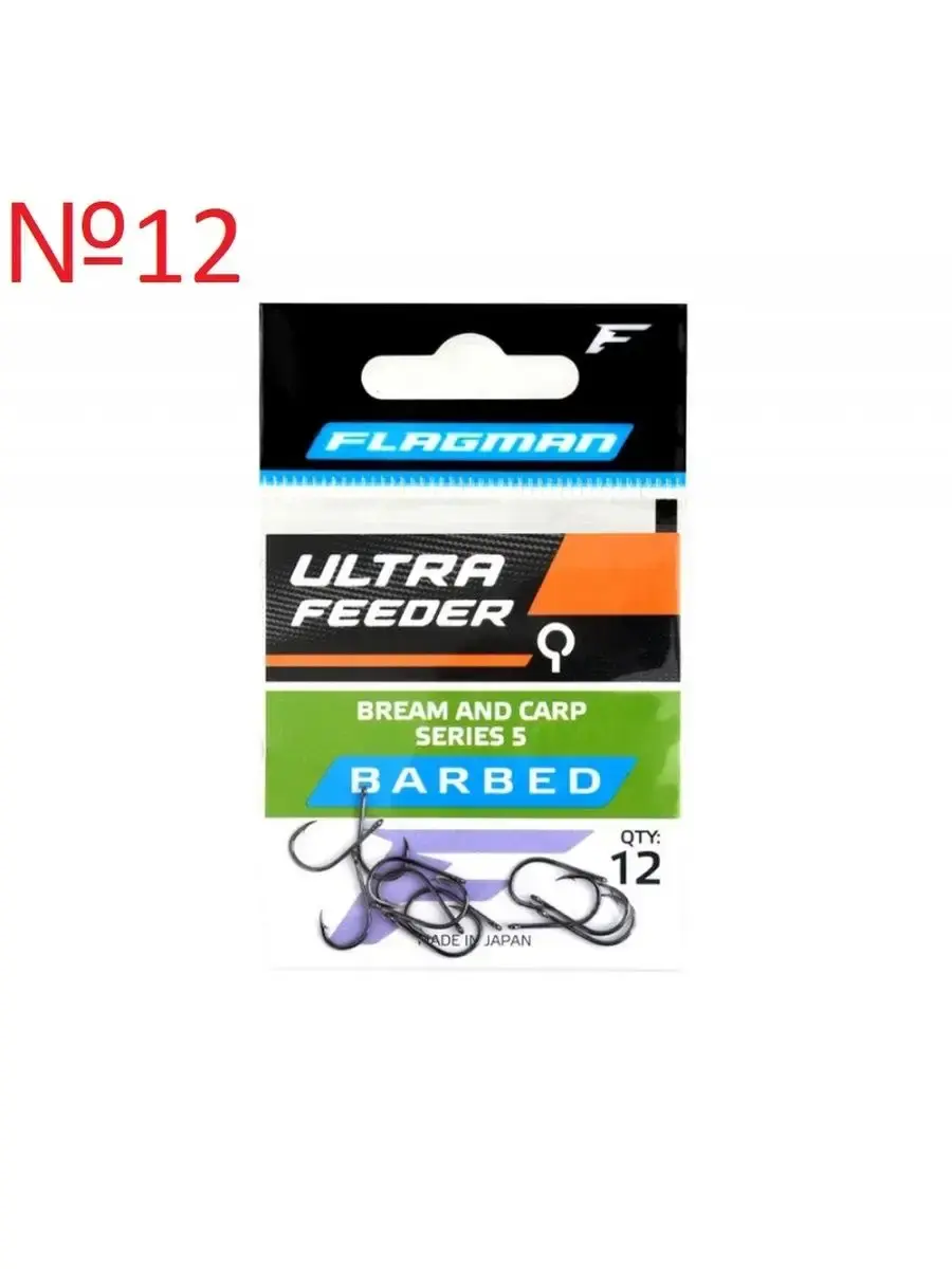 Flagman Ultra Feeder Bream And Carp Series– новая серия высококачественных крючков Flagman, произведенных в Японии. Flagman Ultra Feeder – крючки универсальной формы, имеющие округлый загиб, кованый поддев, средней длины цевье с колечком для привязывания и загнутое в сторону цевья острейшее жало с лазерной заточкой. Характеризуются великолепной зацепистостью и прекрасной реализацией поклевок. Изготовлены из первоклассной стальной проволоки с высококачественным антикоррозийным покрытием Black Nickel. В зависимости от величины предполагаемой добычи и используемой оснастки, вы можете легко подобрать крючки необходимого размера. В упаковке – 12 шт. Ultra Feeder Bream And Carp подойдут как для фидерной, так и для поплавочной ловли на растительные и животные насадки.