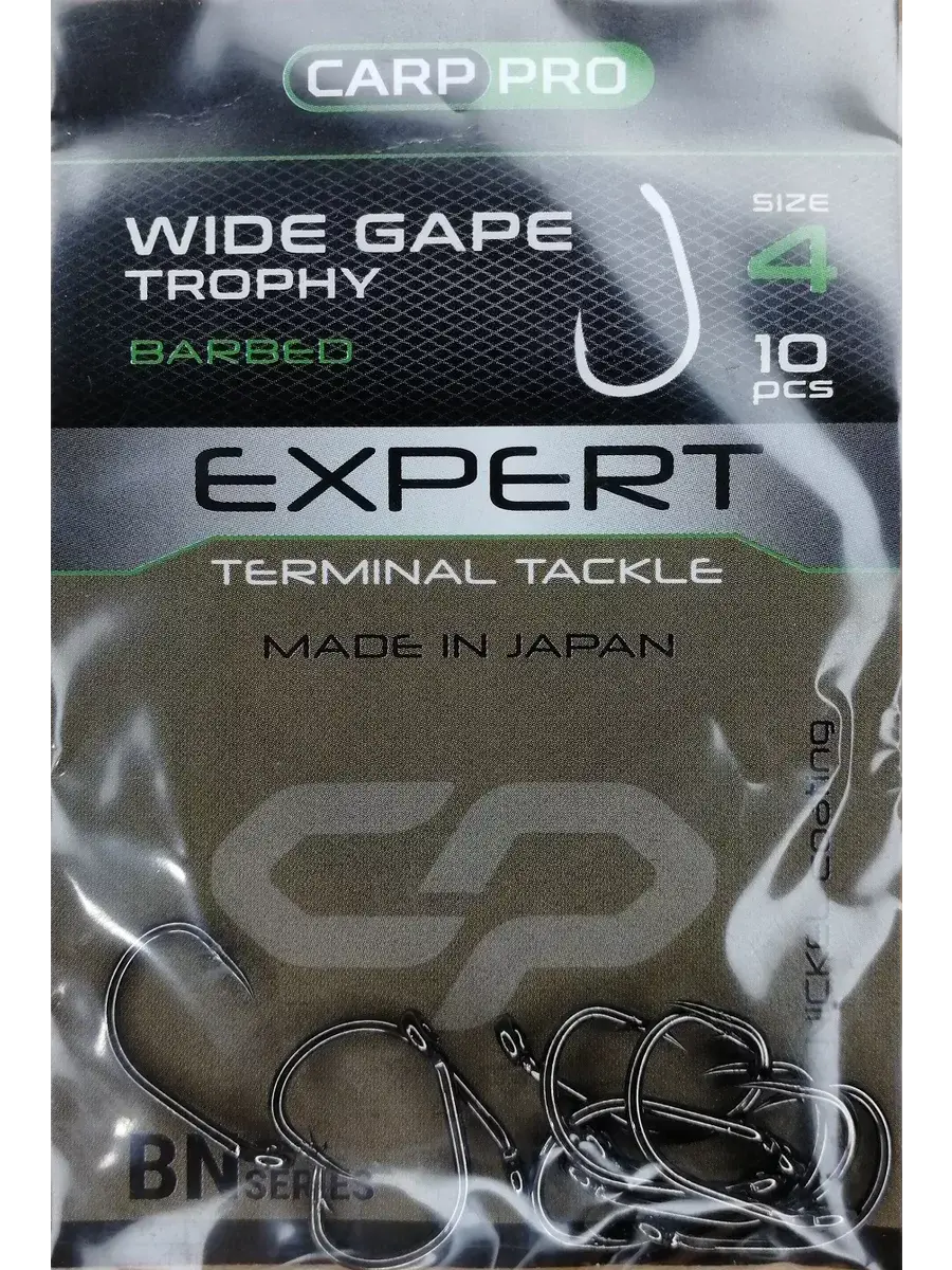 Крючки Carp Pro Black Nickel Wide Gape Trophy — новая серия крючков 2018 г., изготовленных в Японии. Крючки отличаются высочайшим качеством и удовлетворяют самым жестким требованиям. Широкий модельный ряд позволит подобрать оптимальные крючки для ловли карпа в самых различных условиях.