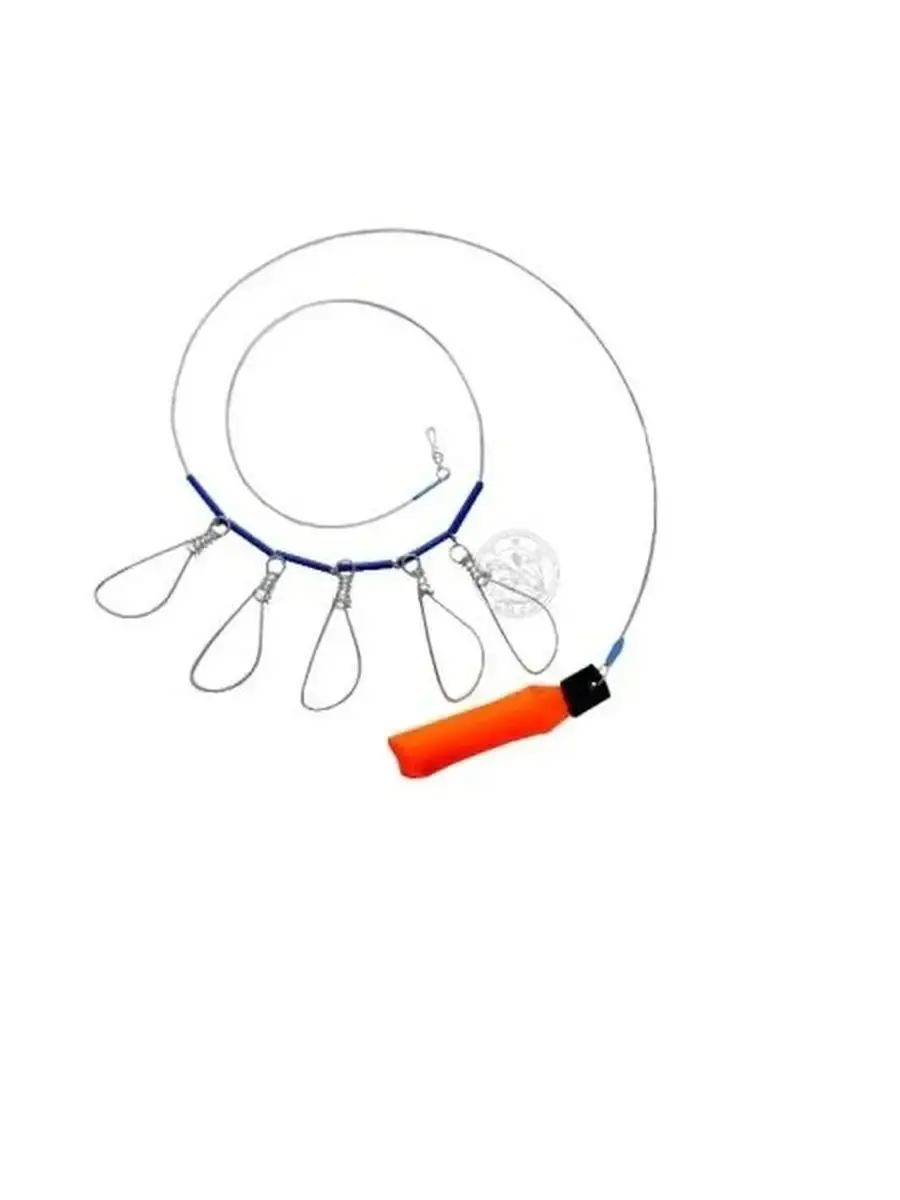 Это приспособление станет надежным помощником в охоте рыбака за трофейным хищником. Острые зубы хищников не смогут перекусить прочный толстый трос. А разрывная нагрузка застёжек составляет 140 кг.