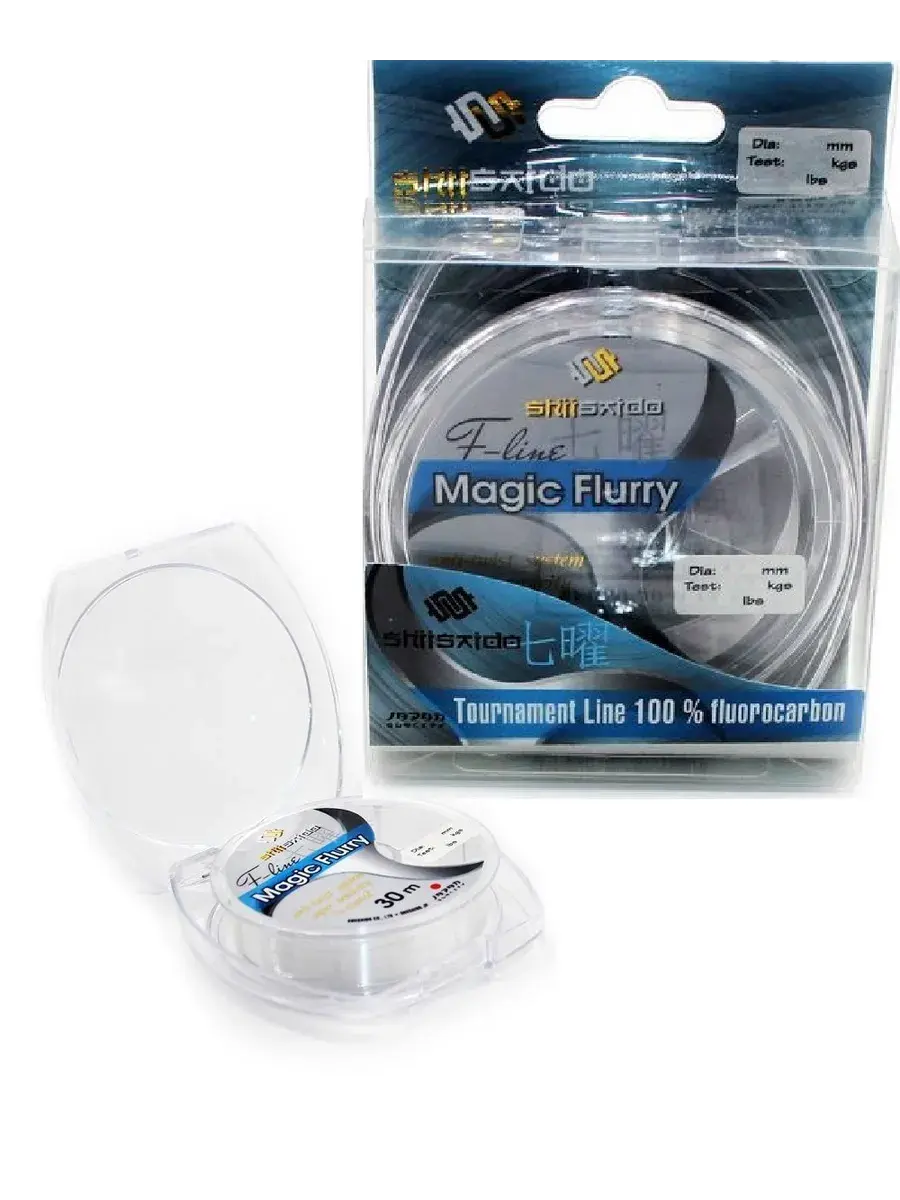 Shii Saido Magic Flurry 30м - леска из 100 % фторуглерода изготовлена по современной японской технологии. Обладает чрезвычайно высокой устойчивостью к воздействию агрессивных сред (температура, намокание, ультрафиолет, механическое воздействие). Абсолютно невидима в воде. Качество, полезное при зимней рыбалке, а также при ловле в тяжелых условиях. Флюорокарбон Shii Saido Magic Flurry может использоваться как поводковый материал в ловле на спиннинг. Также леска хорошо подойдет для зимней рыбалки. Флюорокарбон не боится низких температур. а также резких температурных перепадов. Очень важный фактор - он не впитывает влагу и долго не обмерзает при ловле в холодной воде. Прочность лески позволяет не бояться повреждений о ледяную кромку. Флюорокарбоновая нить тяжелее нейлоновой лески и тонет значительно быстрее. Magic Flurry прозрачный и почти незаметен в воде.
