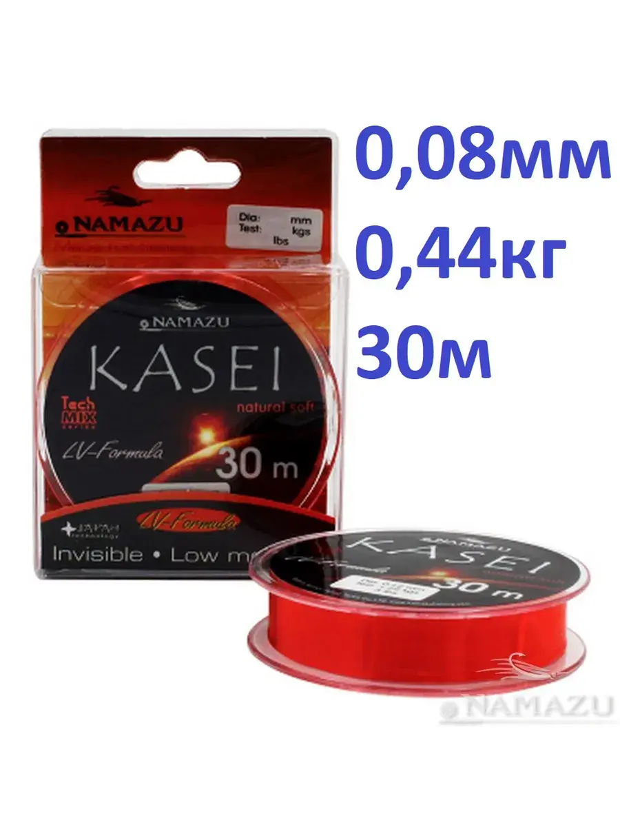 Команда экспертов бренда Намазу для рыбалки в зимний период представила линейку монофила. По словам разработчиков, данная леска серии Kasei была произведена по японским технологиям. Потому создателям удалось достичь малого диаметра и хорошей прочности. Монофил мягкий, практически отсутствует эффект памяти. Потому нить не закручивается в спираль и позволяет анимировать очень легкие приманки, типа мормышек. Окрас у представленной здесь лески Namazu Kasei красный, что делает ее лучше заметной на фоне снега. Размотка удобна именно для рыбалки со льда, когда о дальнем забросе речь не идет, и составляет 30 м.