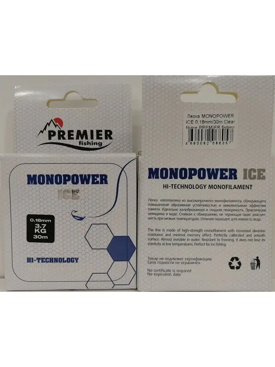 Леска MONOPOWER ICE торговой марки Premier fishing выполнена из высокопрочного монофиламента, обладающего повышенной абразивной устойчивостью и минимальным эффектом памяти. Идеально калиброванная и гладкая поверхность. Практически невидима в воде.Леска стойкая к обмерзанию, не теряет свою эластичность при низких температурах. Отлично подходит для ловли со льда. Позволяет работать очень легкими приманками и чувствовать при этом каждое прикосновение рыбы.