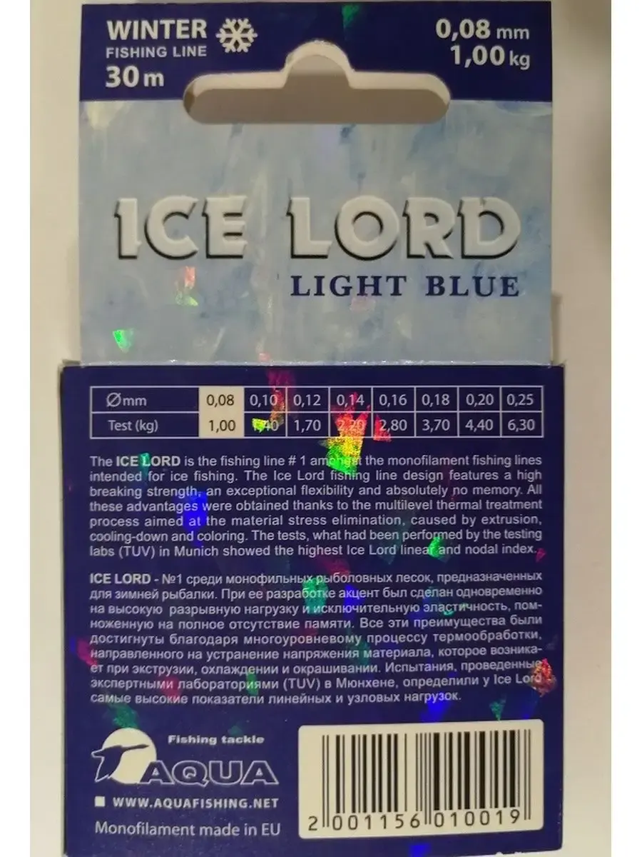 Ice Lord - №1 среди монофильных рыболовных лесок, предназначенных для зимней рыбалки. При ее разработке акцент был сделан одновременно на высокую разрывную нагрузку и исключительную эластичность, помноженную на полное отсутствие памяти. Все эти преимущества были достигнуты благодаря многоуровневому процессу термообработки, направленного на устранение напряжения материала, которое возникает при экструзии, охлаждении и окрашивании. Испытания, проведенные экспертными лабораториями (TUV) в Мюнхене, определили у Ice Lord самые высокие показатели линейных и узловых нагрузок.
