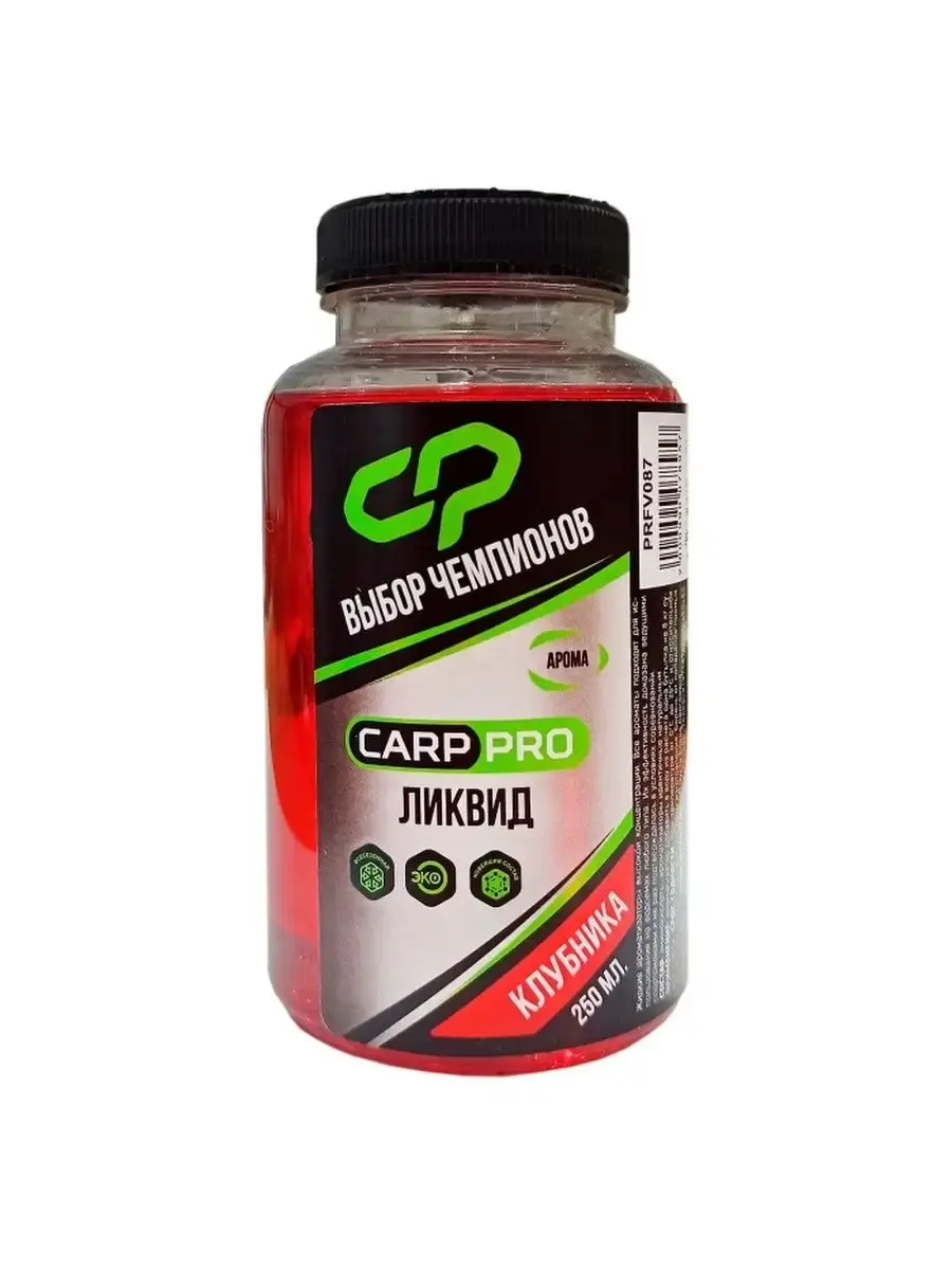 Carp Pro Клубника – жидкая добавка в прикормочную смесь со сладким ароматом клубники. Сладкий, насыщенный аромат клубники – один из основных эффективных вкусов при ловле карповых на коммерческих водоемах. Использовать можно как добавку или замешивать в прикормку, предварительно разведя ликвид в воде.