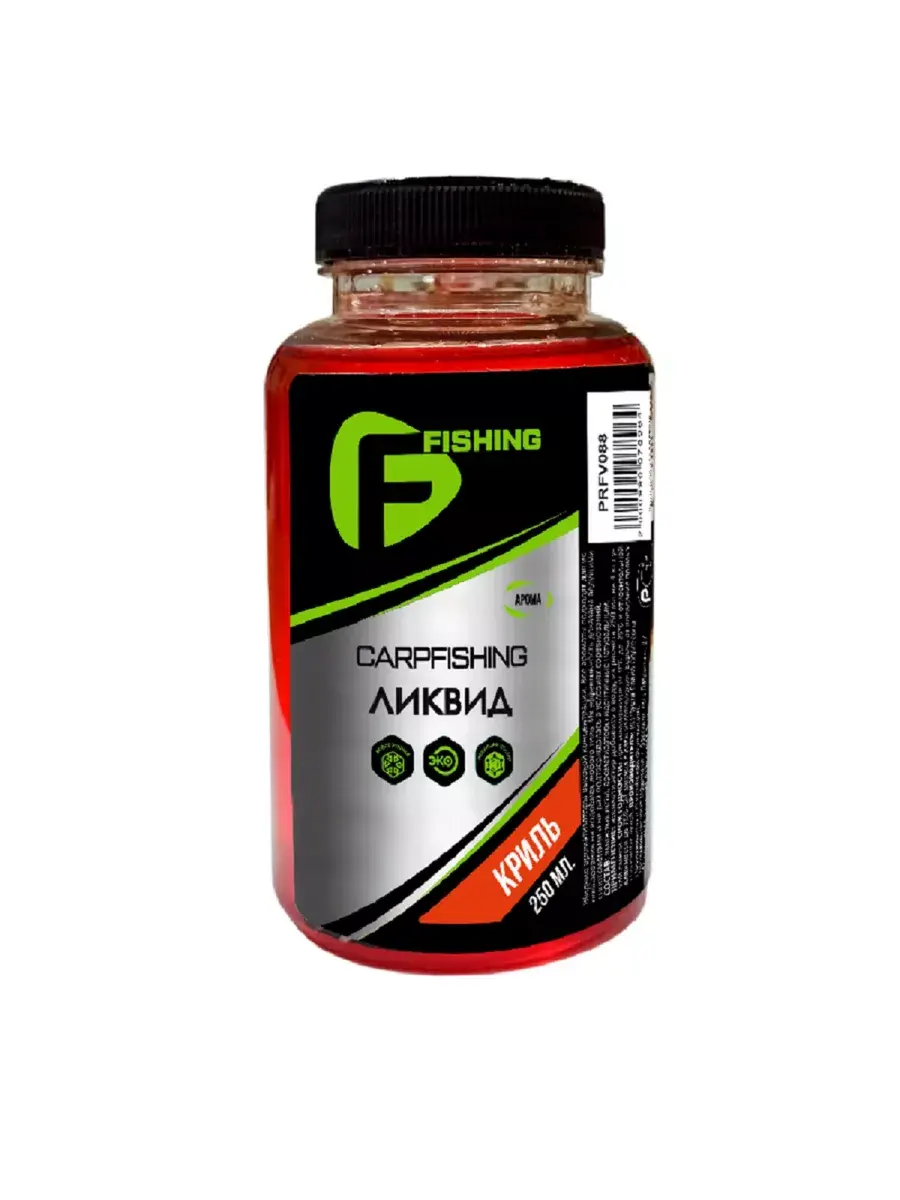 F-Fishing Carp Криль – жидкая добавка в прикормочную смесь с ароматом криля. Данный аромат будет безотказно работать по прохладной воде, когда рыбе требуется питательный корм. Использовать можно как добавку или замешивать в прикормку, предварительно разведя ликвид в воде.