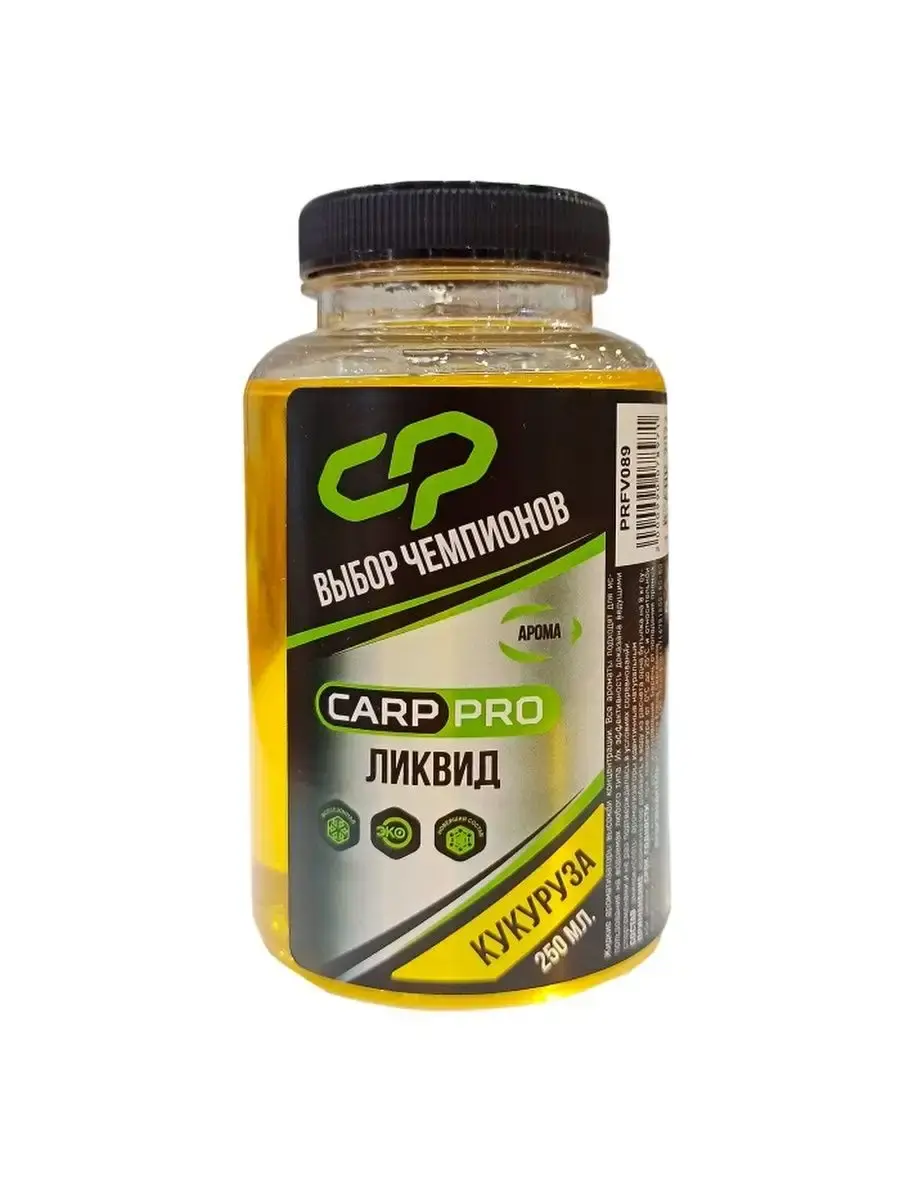 Carp Pro Кукуруза – жидкая добавка в прикормочную смесь с ароматом кукурузы. Кукуруза и ее аромат – неотъемлемая часть любой карповой рыбалки. Кукуруза уже давно ассоциируется у рыболовов с ловлей карася, амура, карпа, но, по сути, эта ароматика является универсальной и привлекательной для любой рыбы. Использовать можно как добавку или замешивать в прикормку, предварительно разведя ликвид в воде.