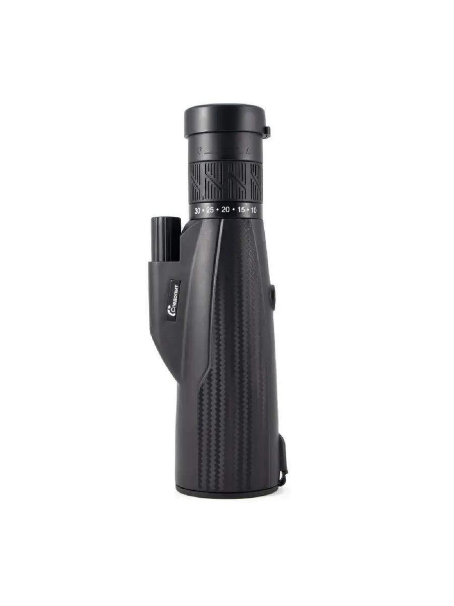 Линзы изготовлены из оптического стекла. Корпус монокуляра изготовлен из пластика и имеет прорезиненное покрытие, которое убережет прибор от брызг и пыли.