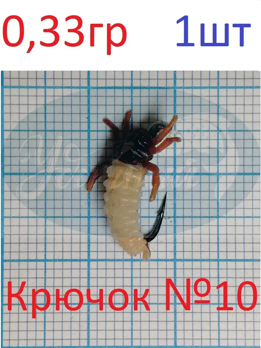 Копия личинки некрупного ручейника, вынутой из домика. В совокупности с крючком, на котором смонтирована, и напайкой представляет собой имитацию насекомого, насаженного на мормышку. Практика показывает, что такие копии часто работают результативней, чем служащие их прототипом естественные приманки. Цвета подобраны в соответствии с окраской наиболее распространенных видов насекомого. Приманка показывает хорошие результаты как по открытой воде, так и при ловле со льда.