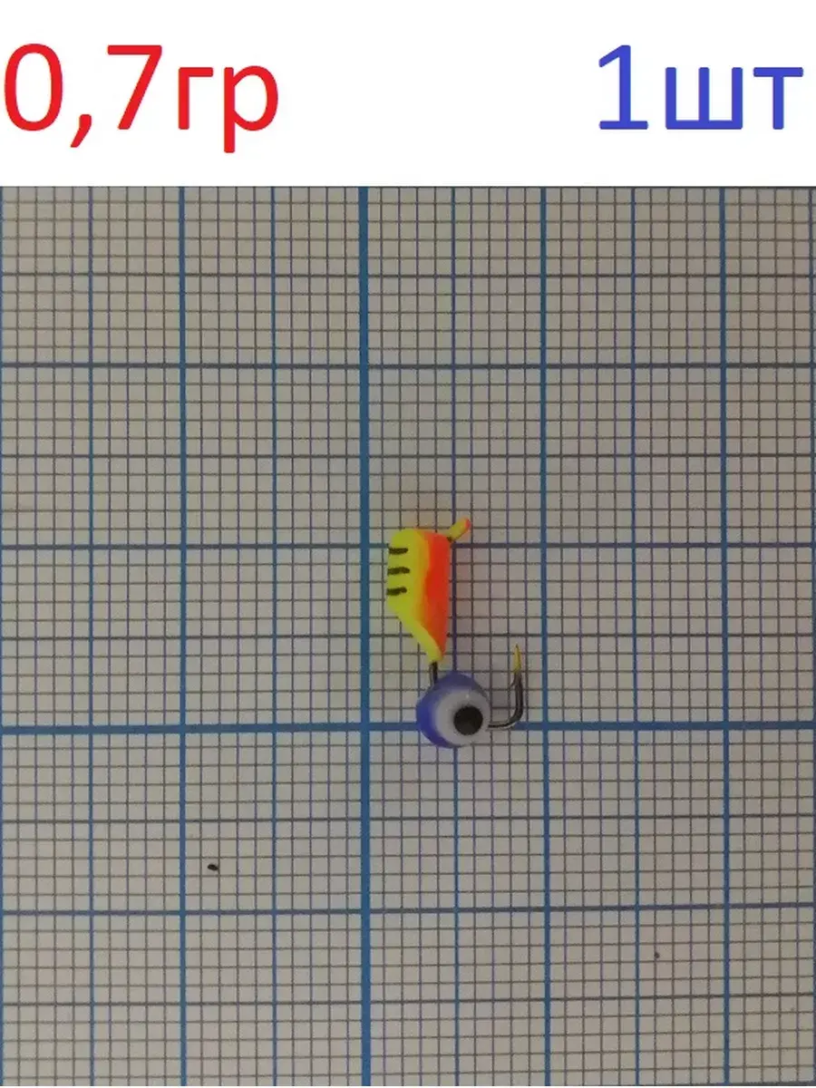 Мормышка вольфрамовая "Безнасадка" (Олта), петля, худ.раскрас (желтый), окуневый глаз синий, 0.7гр
