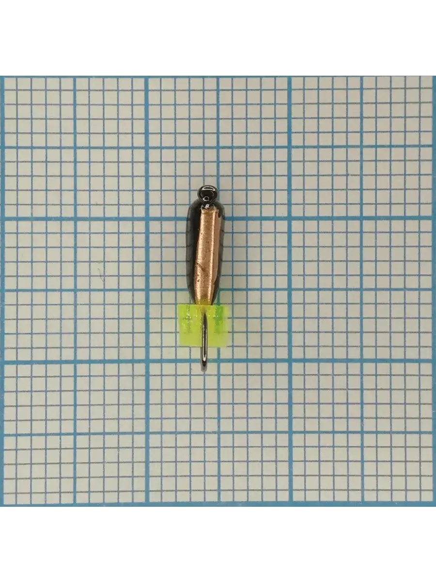 Мормышка вольф. безнасадочная "ЯМАН" Столбик №3, d-2 мм, L-7 мм, вес 0,50 гр., фц. желтый кубик, цв. медь