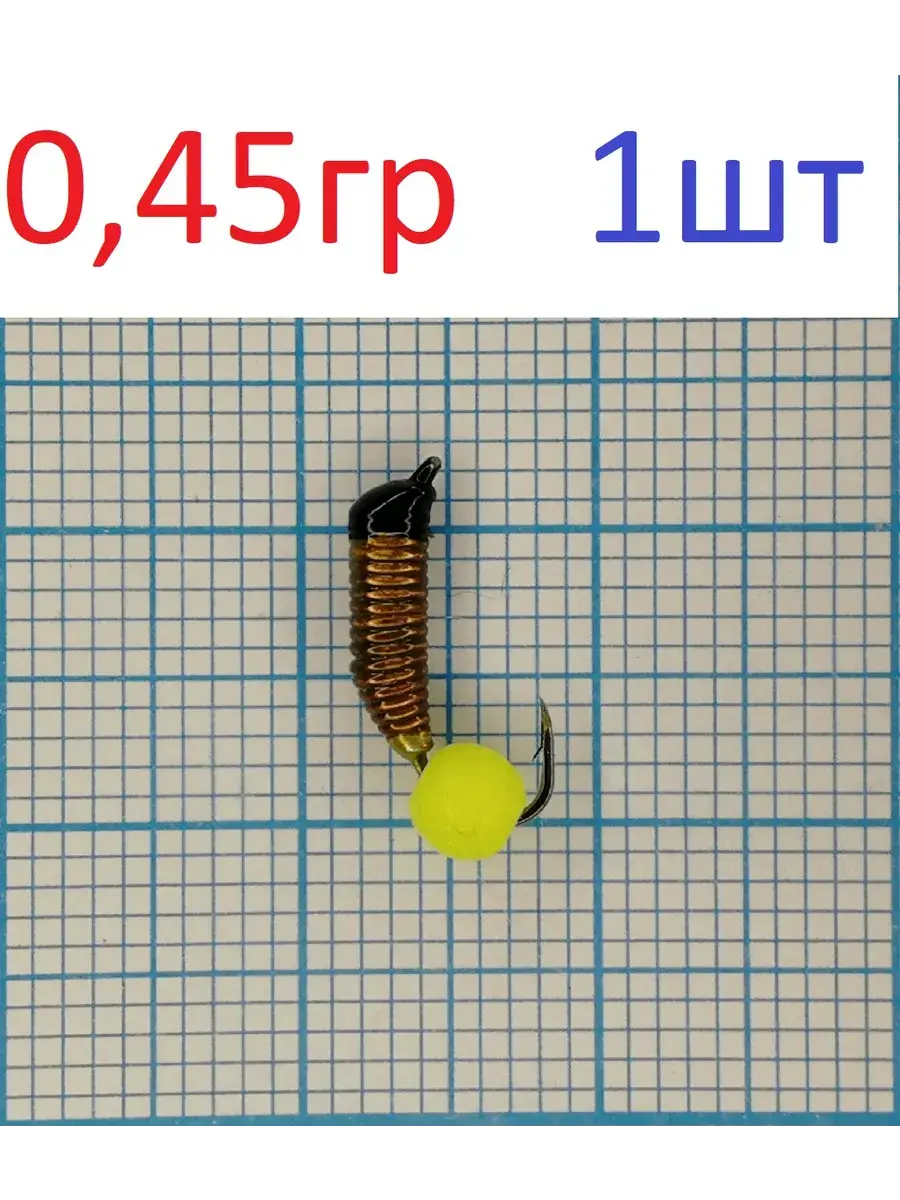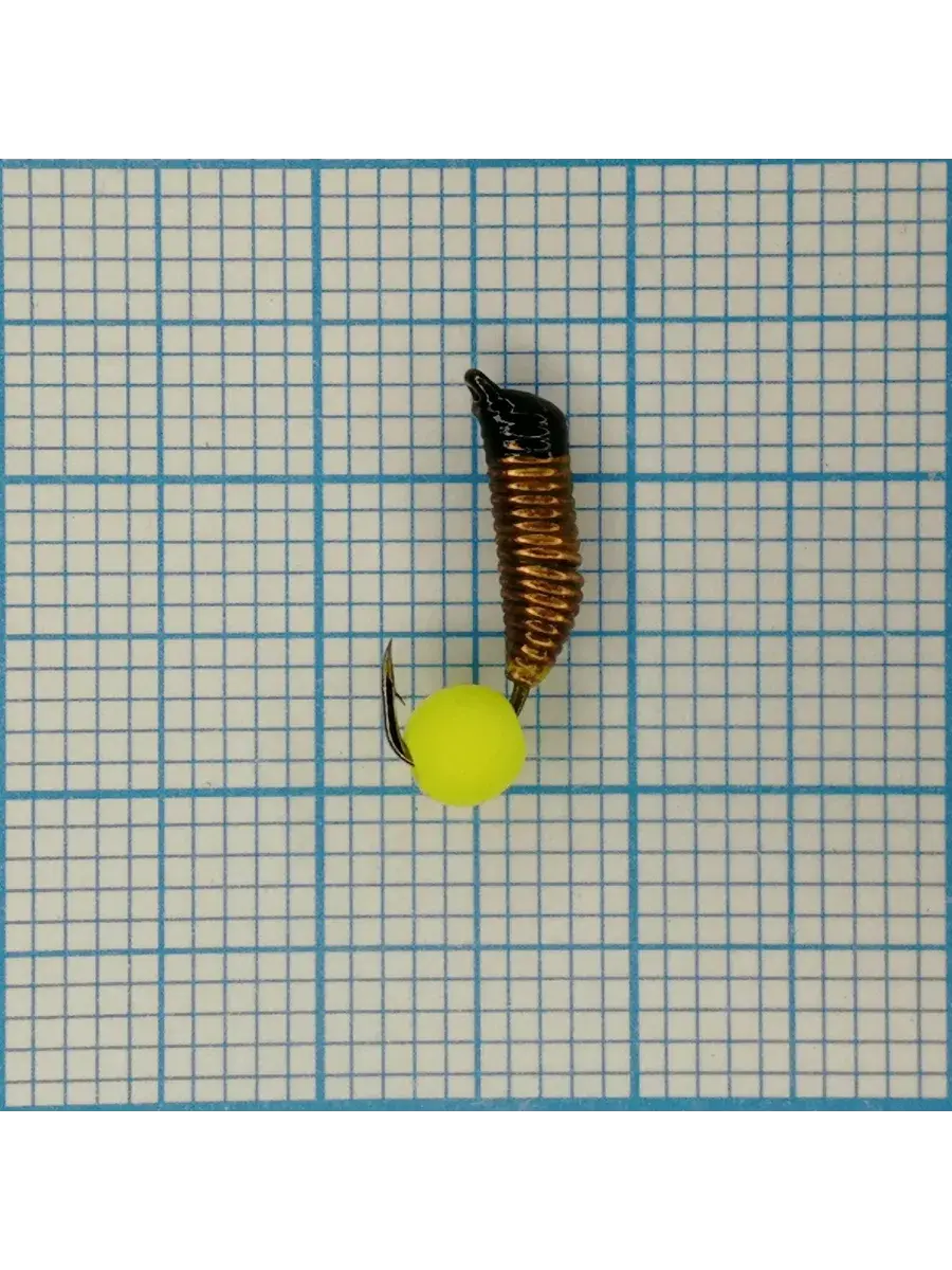 Мормышка вольф. безнасадочная "ЯМАН" Ручейник №3, d-1.5 мм, L-8.5 мм, вес 0,45 гр., фц. желтый шар, цв. желтый