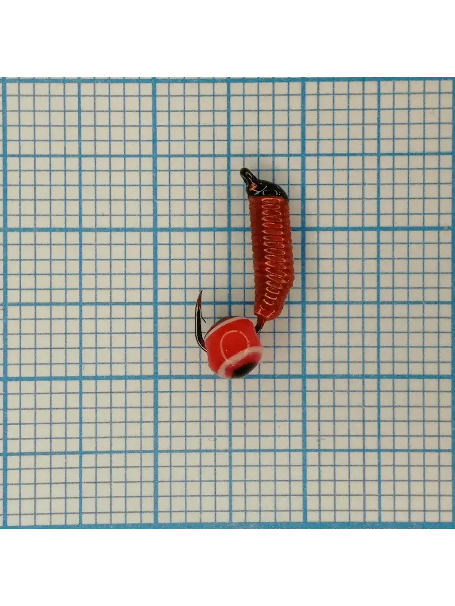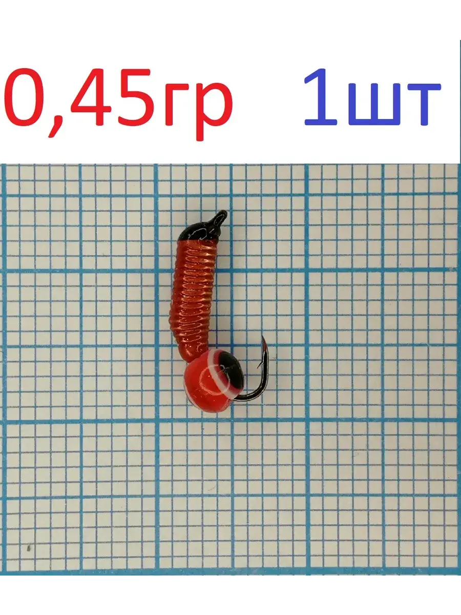 Мормышка вольф. безнасадочная "ЯМАН" Ручейник №3, d-1.5 мм, L-8.5 мм, вес 0,45 гр., рыбий глаз, цв. красный
