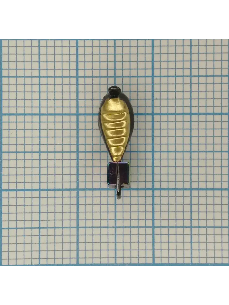 Мормышка вольф. безнасадочная "ЯМАН" Жучок №3, вес 0,50 гр., кошачий глаз сверленый, цв. латунь