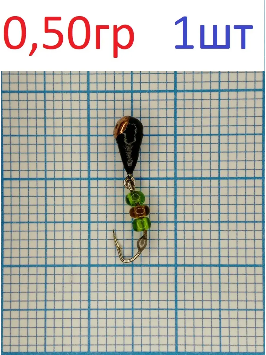 Мормышка вольфрамовая "Капля с подвесным крючком" (Олта), коронка медь Размер - 3,0мм Вес - 0,50гр