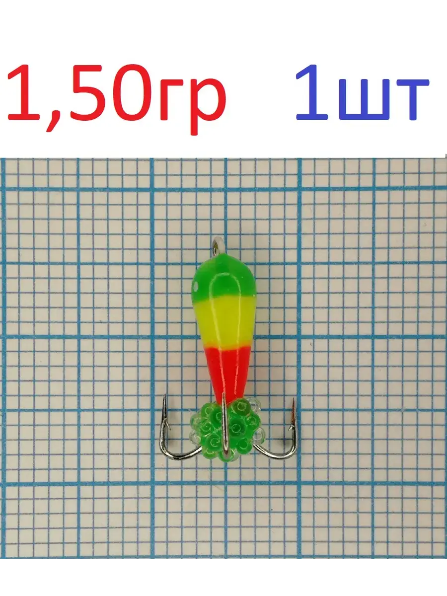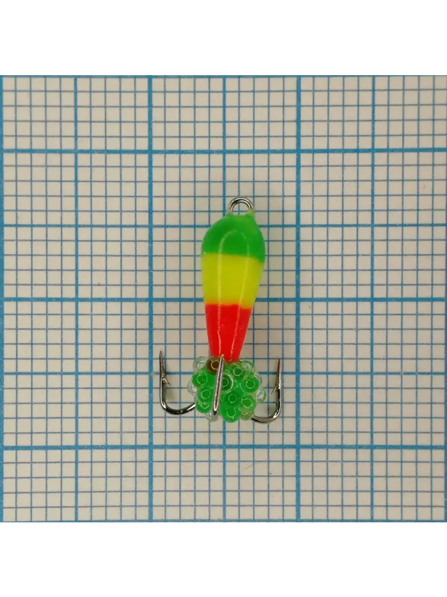 Мормышка вольф. безнасадочная "ЯМАН" Черт с петлей (длинный) Светофор, d-4 мм, вес 1,5 г, подвеска икринка зеленая