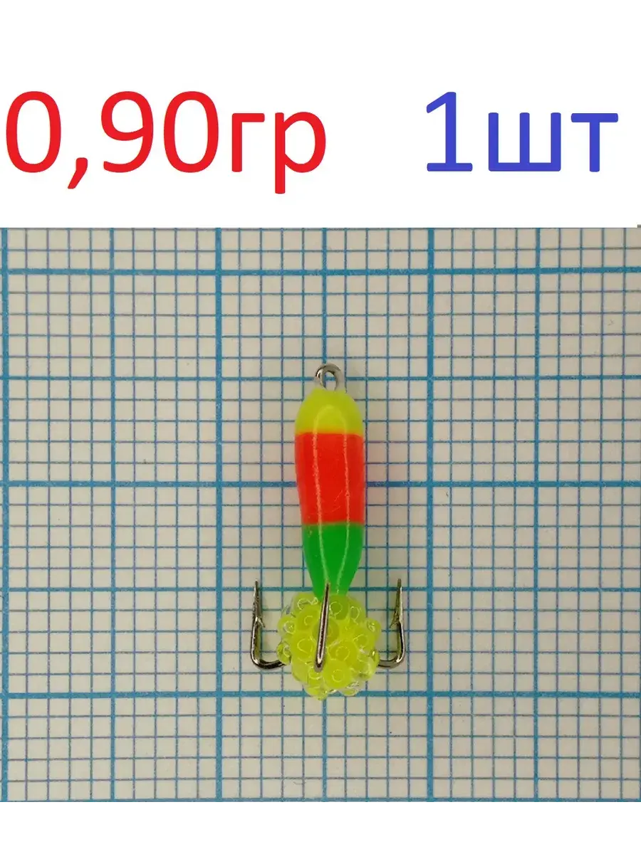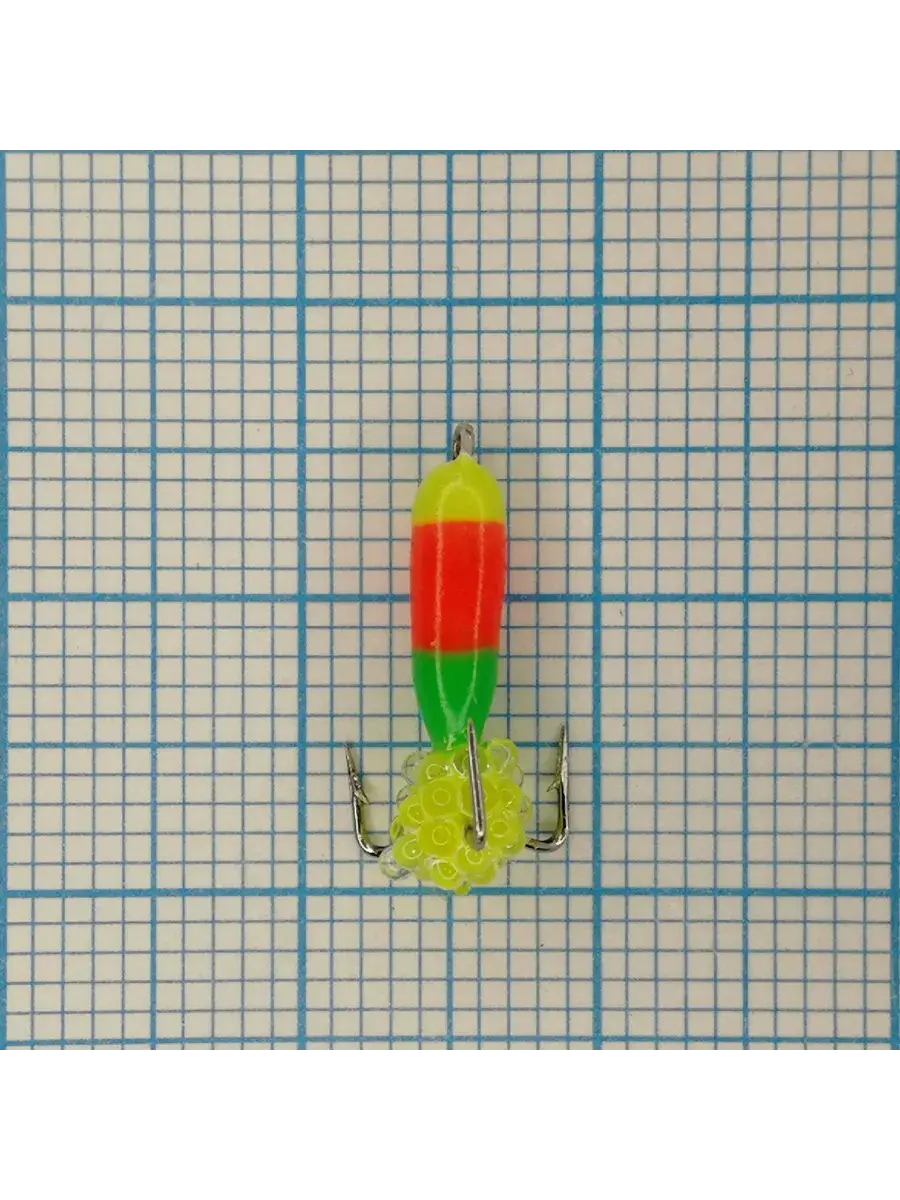 Мормышка вольф. безнасадочная "ЯМАН" Черт с петлей (длинный) Светофор, d-3 мм, вес 0,9 г, подвеска икринка салатовая