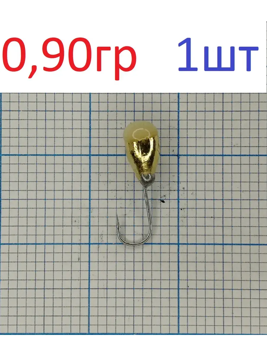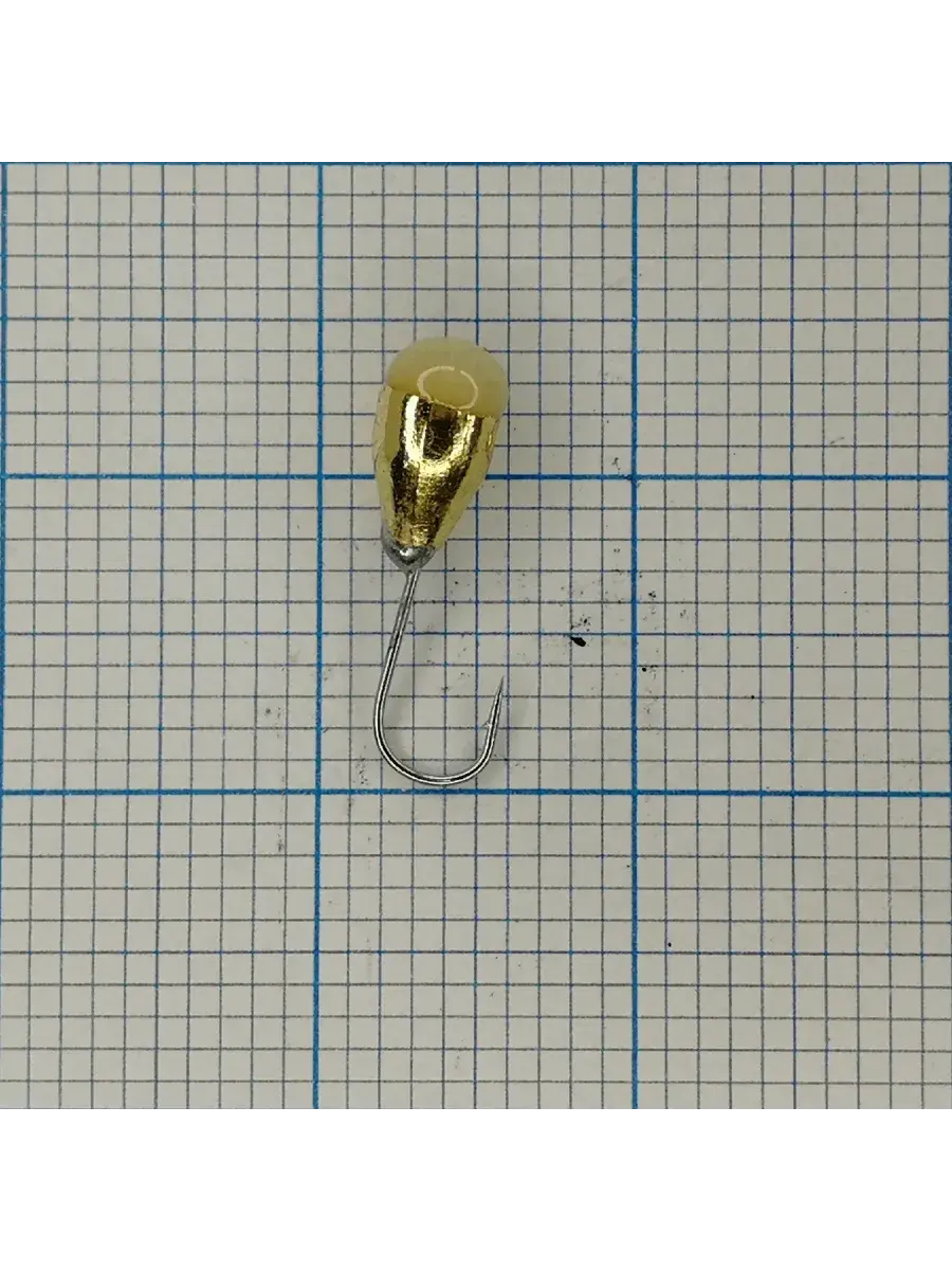 Мормышка вольф"ЯМАН"Капля с фосф. с отв, р.4,вес 0,90 цв.золото