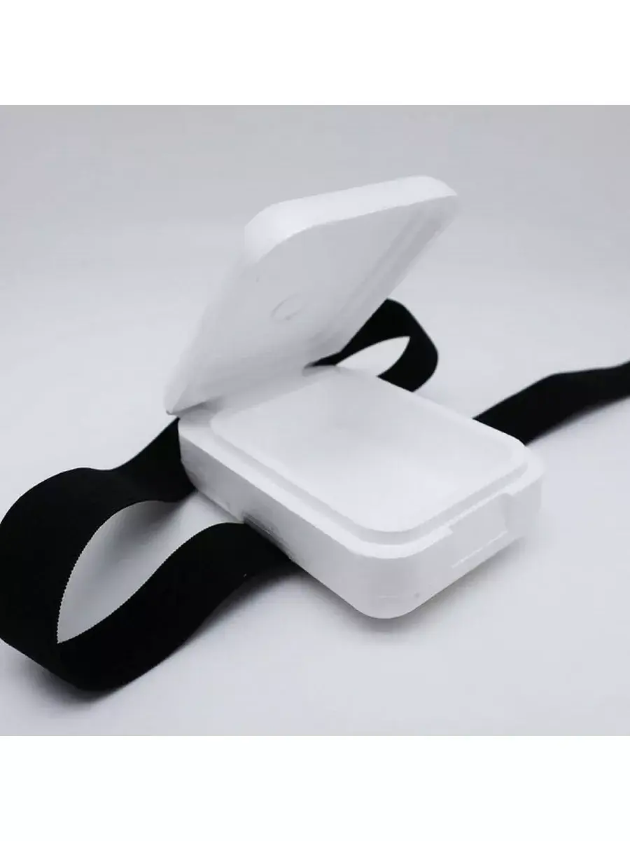 Мотыльница из пенополистирола на резинке с плотно закрывающейся крышкой. Мотыльница 1-секция, с эластичным ремнем-резинкой для крепления мотыльницы на колене, руке.