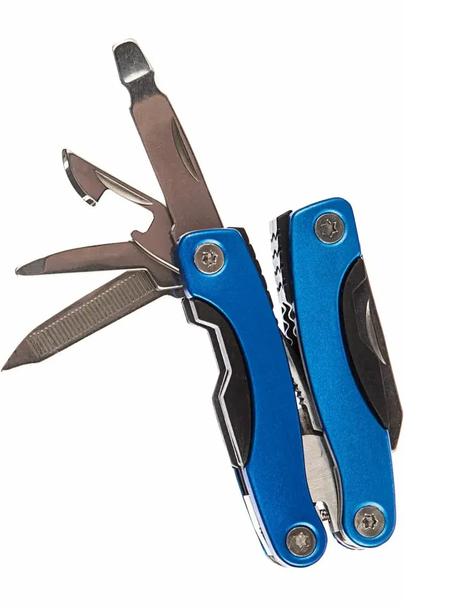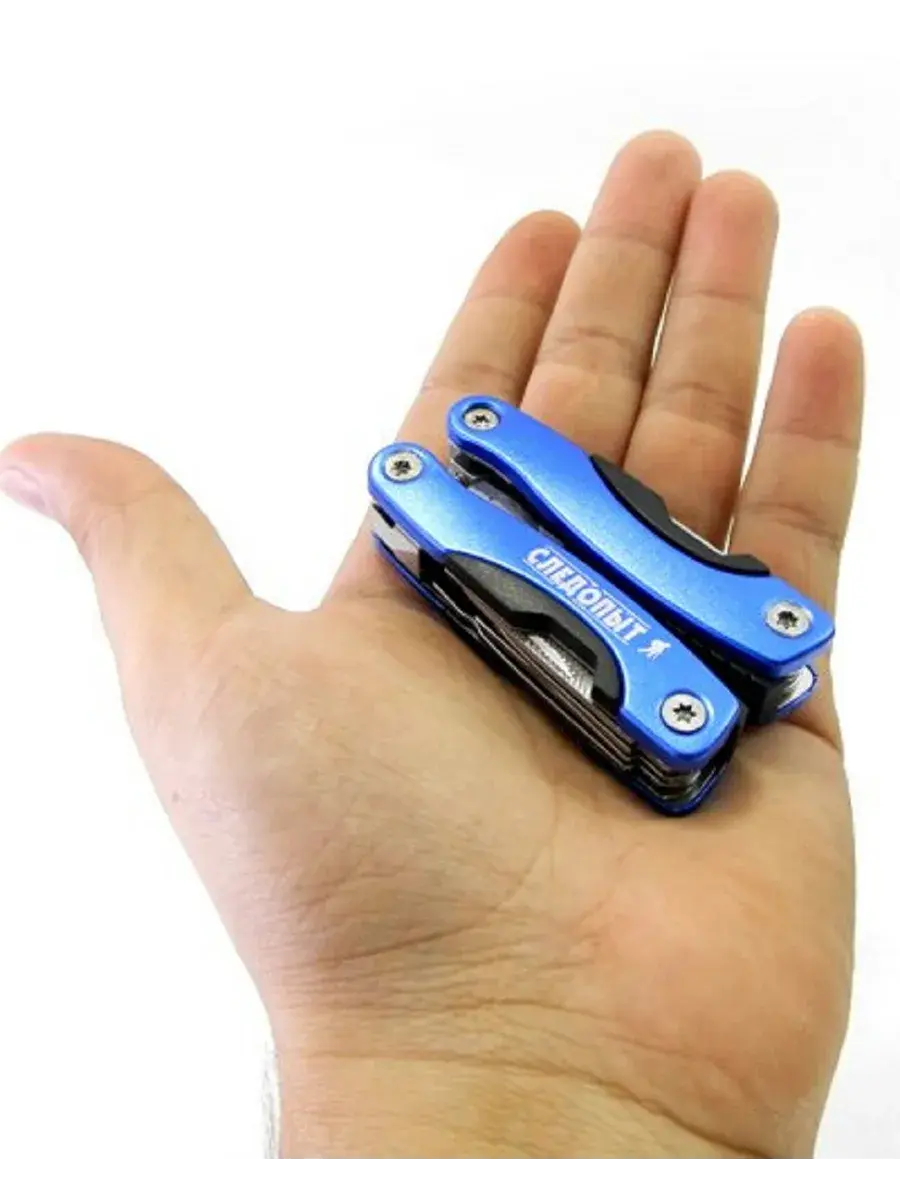 В комплект мультитула входят: • Нож • Пила • Напильник • Открывалка • Плоскогубцы • Консервный нож • Отвертка плоская, 2 мм • Отвертка плоская, 4 мм • Отвертка крестовая ХАРАКТЕРИСТИКИ: