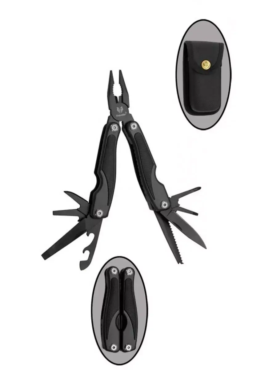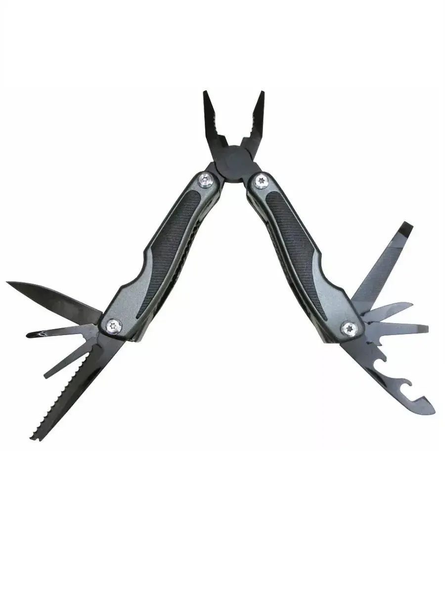 Мультитул оснащен удобной пластиковой рукояткой, которая обеспечивает прочный и комфортный захват во время работы с инструментом. Набор дополнительных инструментов включает в себя: