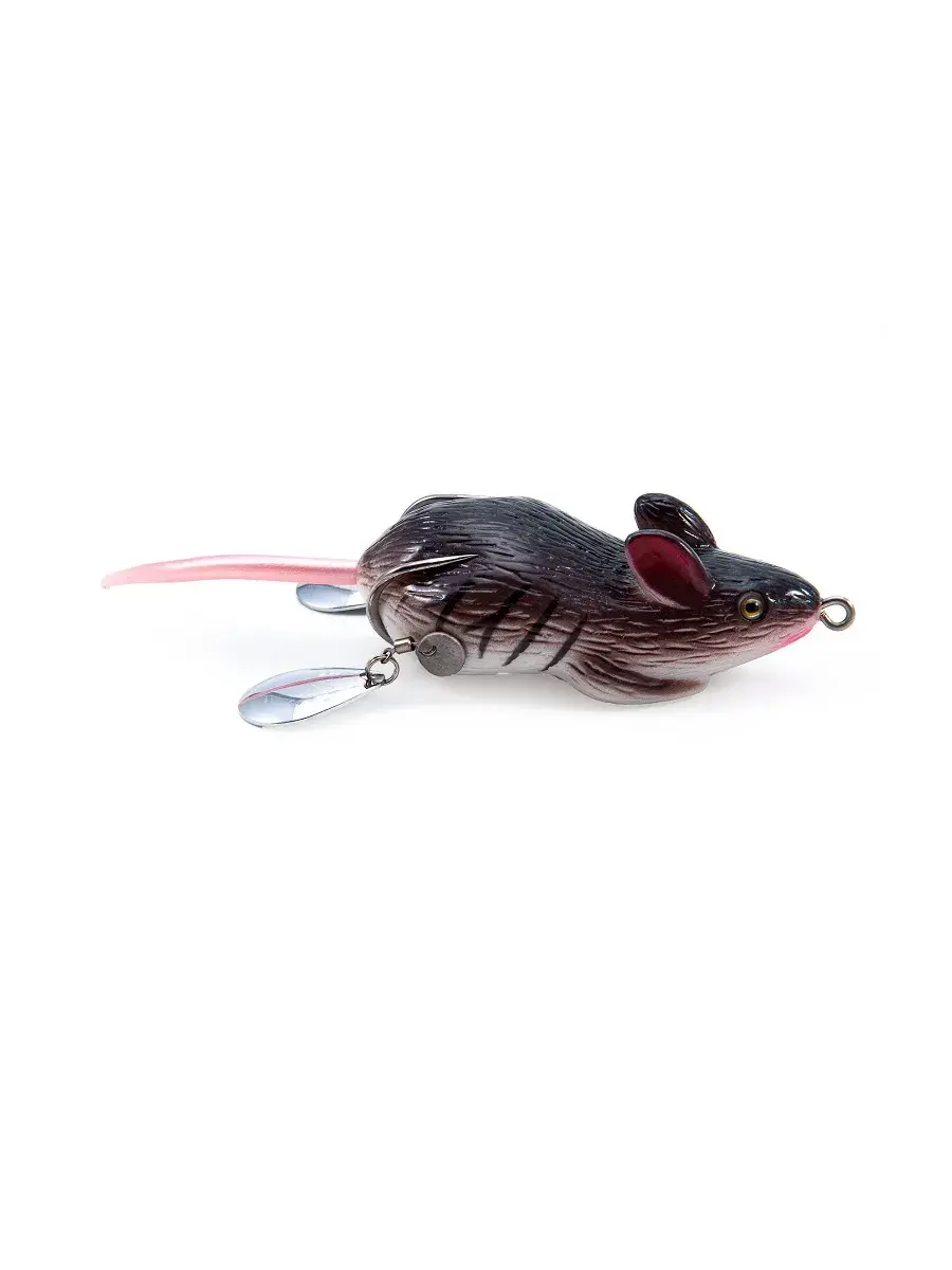 Namazu Mouse - реалистичная силиконовая имитация мыши от компании Namazu. Поверхностная приманка без труда преодолевает растительность, что делает ее незаменимой при облавливании сильно заросших водоемов, даже в тот период, когда ловить на обычные воблеры и блесны сложно. Незацепляемость достигается тем, что двойной крючок, которым оснащена приманка, направлен остриями вверх, при этом достаточно плотно прилегают к телу. В воде приманка весьма реалистично играет. Дополнительно мышь снизу оснащена двумя вращающимися лепестками, которые провоцируют хищника на поклёвку и являются точками атаки. Анимировать и проводить приманку можно самыми разнообразными способами. Тело приманки имеет силиконовый хвост, вызывающий еще больший интерес у хищника. Тело приманки изготавливается из мягкого материала и при поклёвке легко сжимается, быстро освобождая крючки, что гарантирует эффективную подсечку и снижает вероятность схода рыбы. Способы анимации: Stop & Go, равномерная, рывковая. Приманка имеет запасной хвост, в случае его повреждения хищником.