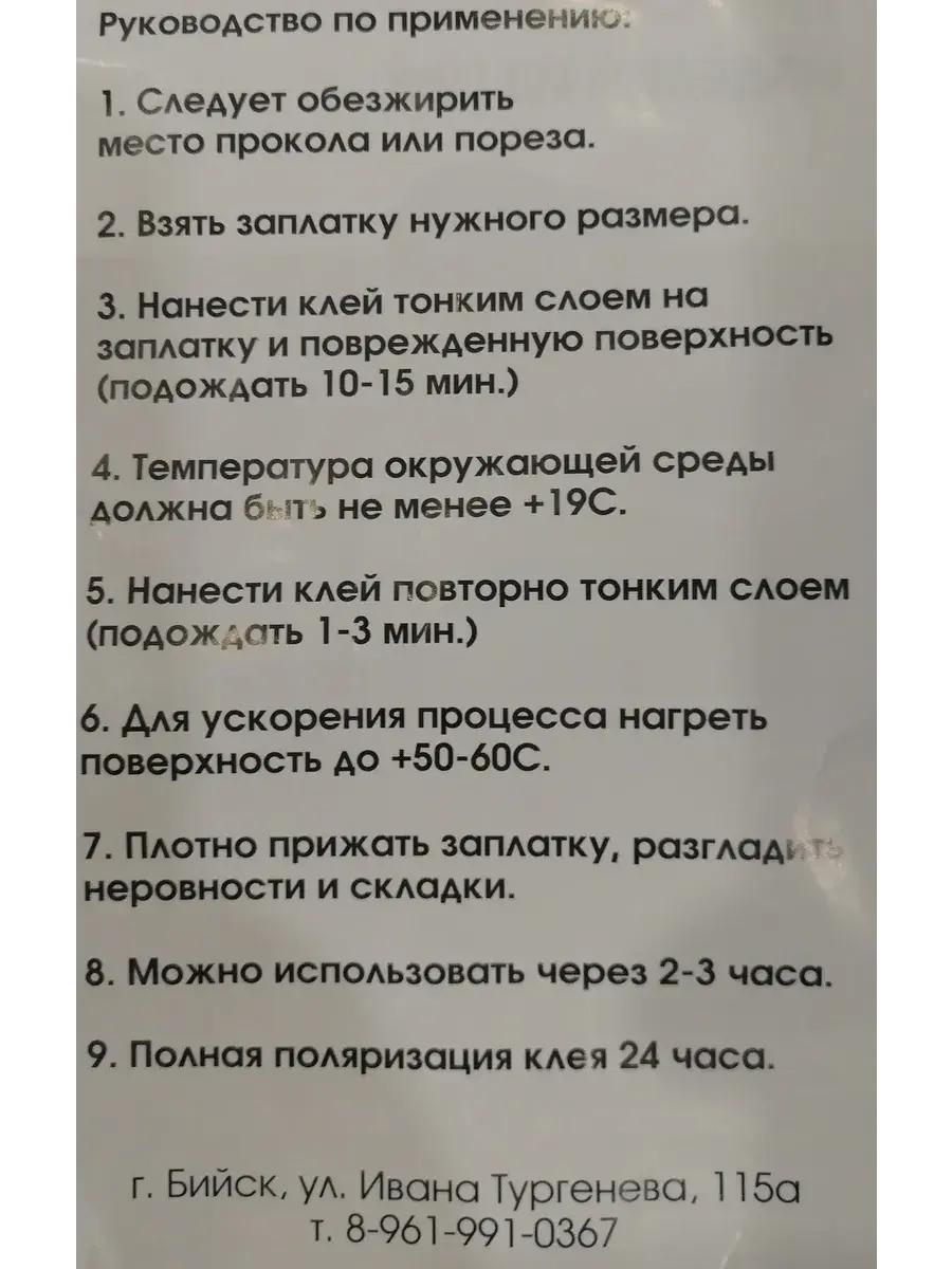 Вулканизирует. Проникает в основу ремонтируемого изделия, обновляя поврежденный ПВХ.