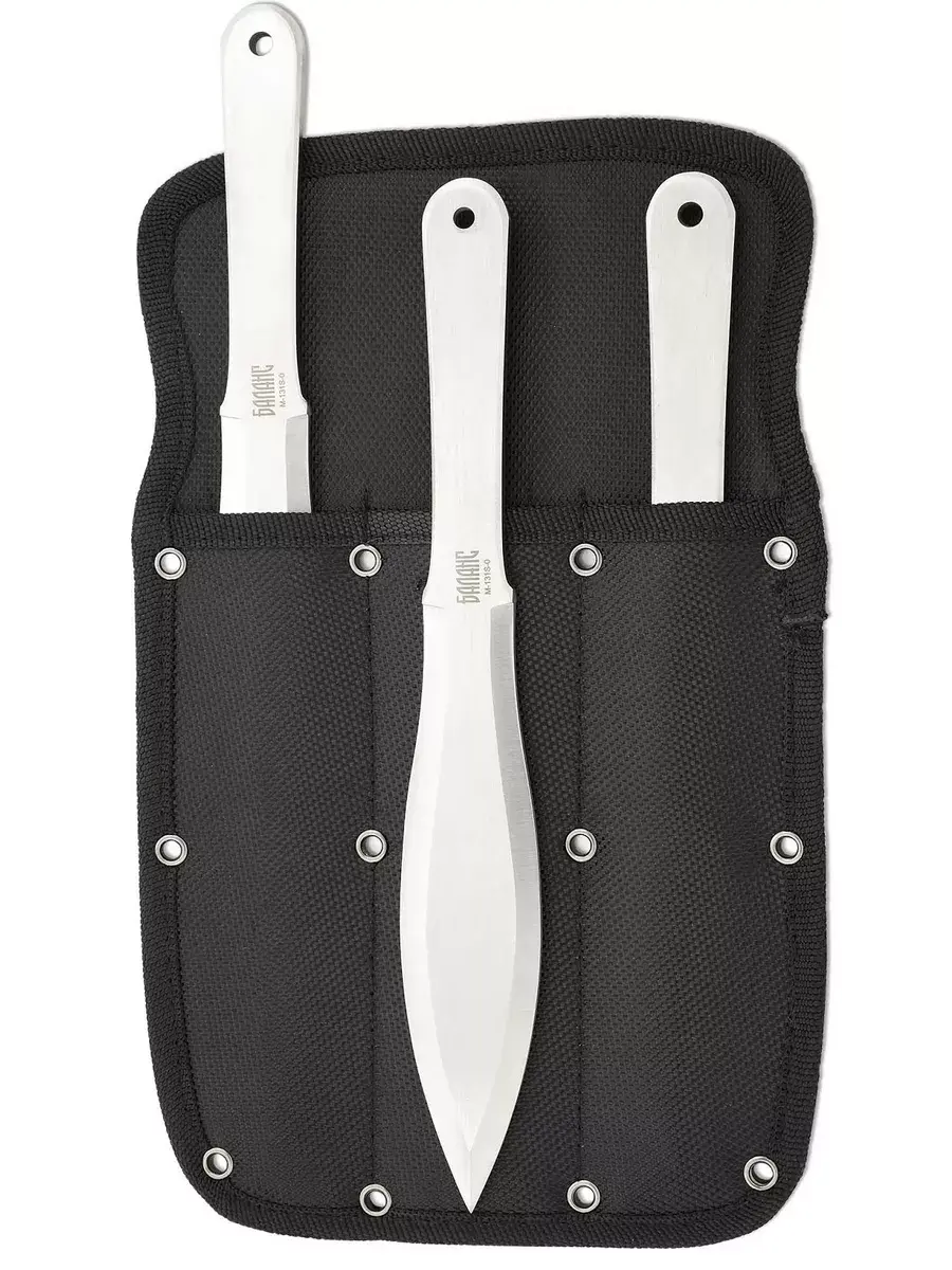 Набор метательных ножей от компании «Ножемир»! «Баланс M-131S-0» – небольшие, относительно лёгкие центрально-симметричные ножи, которые отлично подойдут новичкам и более продвинутым спортсменам. Снаряд обеспечивает эффективную наработку навыков метания, подходит для женского пола и юниоров.