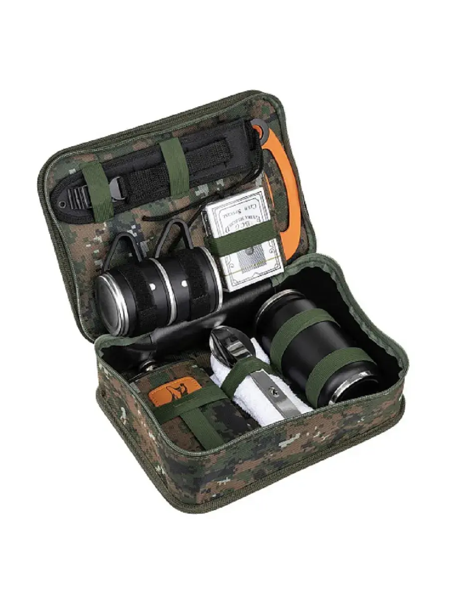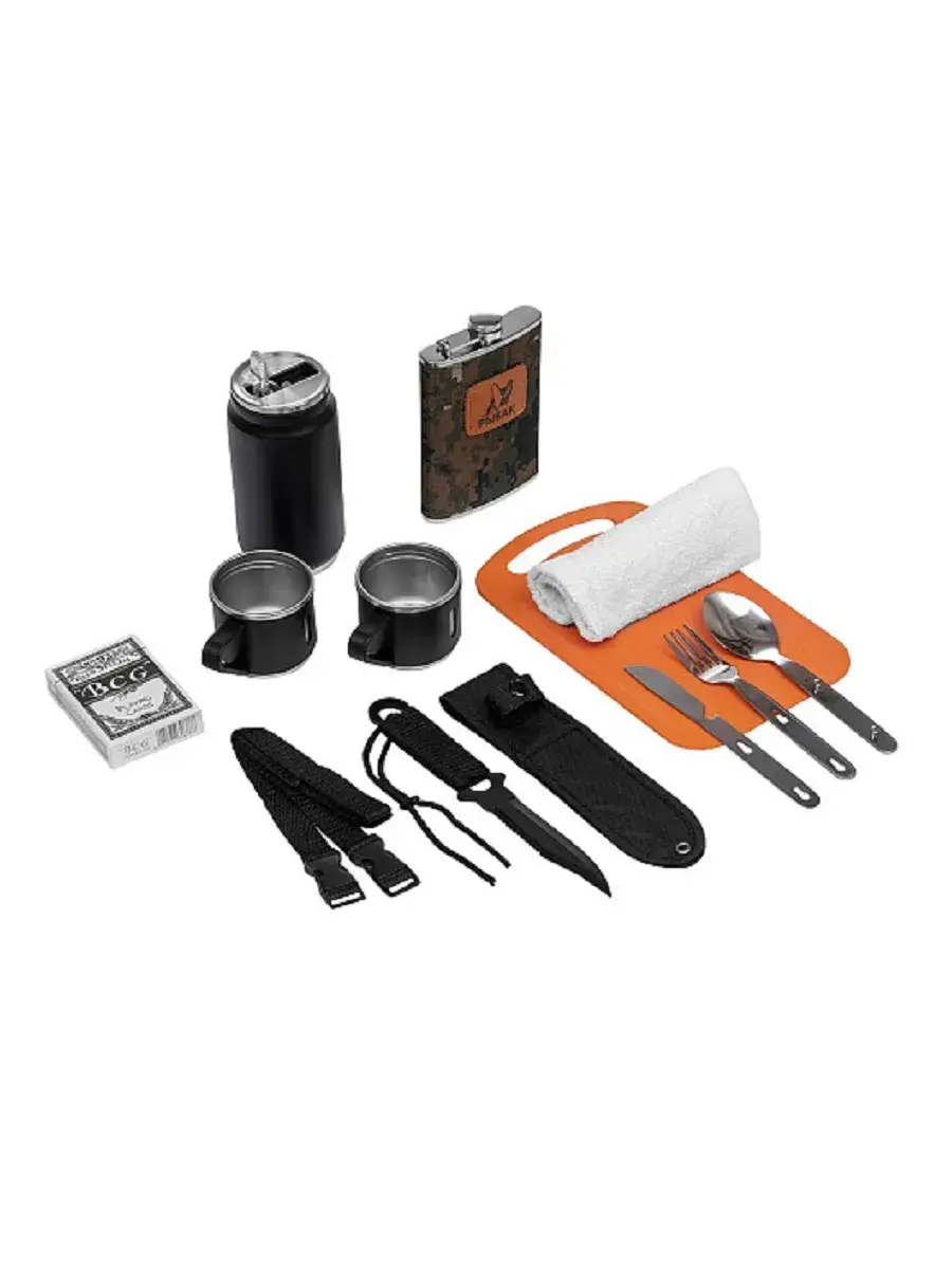 Походный набор посуды в сумке-чехле от бренда Helios - идеальный подарок мужчине на день рождения. Этот подарочный набор включает всё необходимое для отдыха на природе, в путешествиях, на охоте и рыбалке.